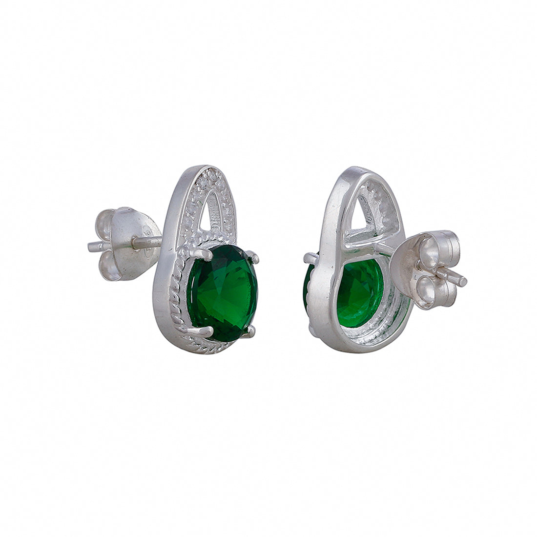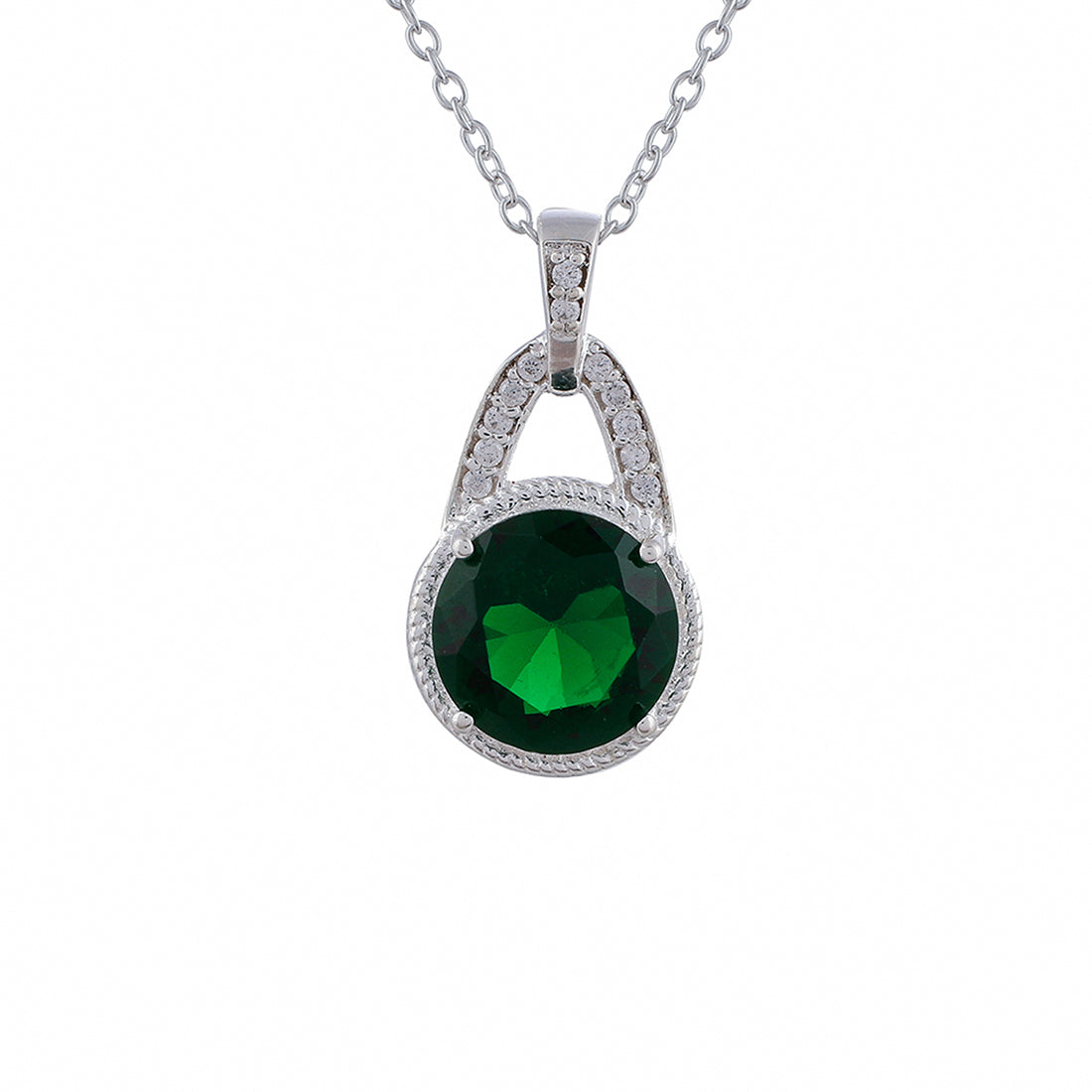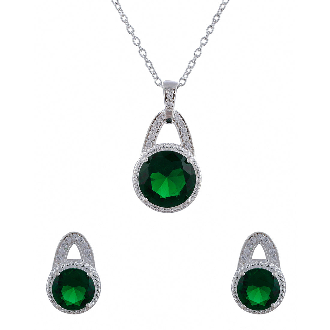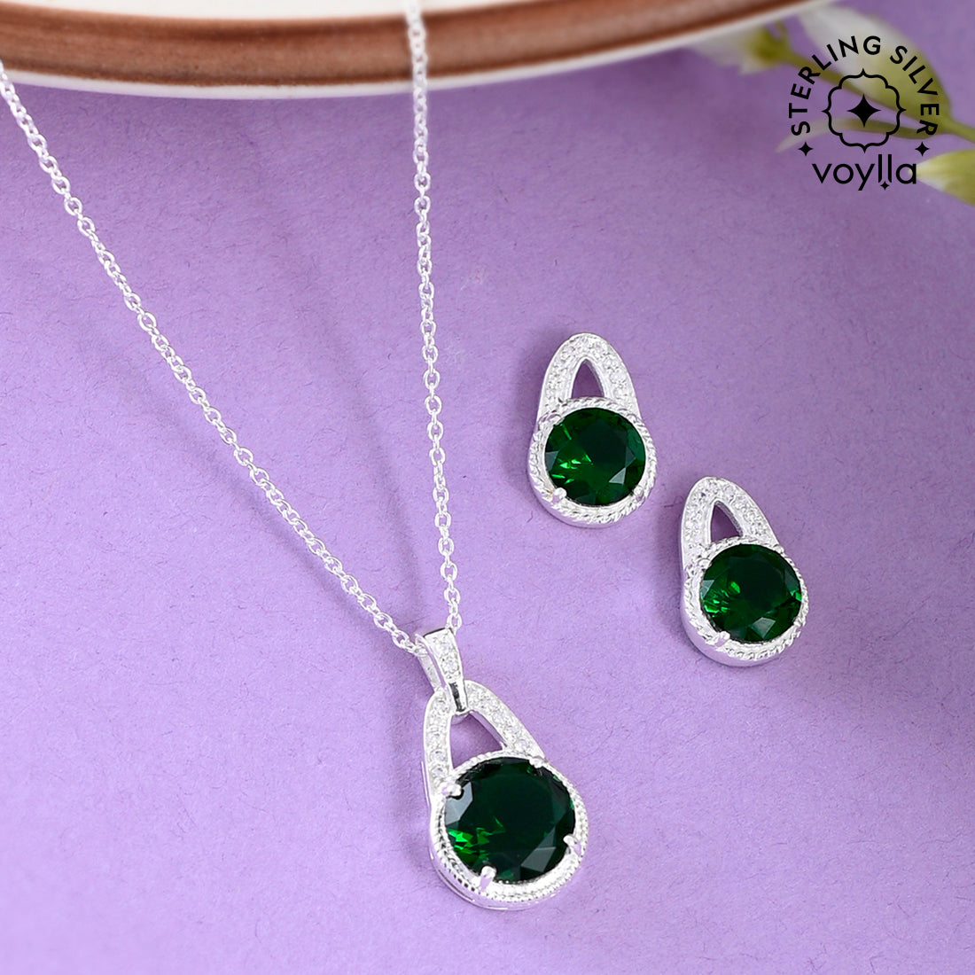 Green Stone Studded 925 Sterling Silver Pendant Set