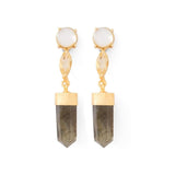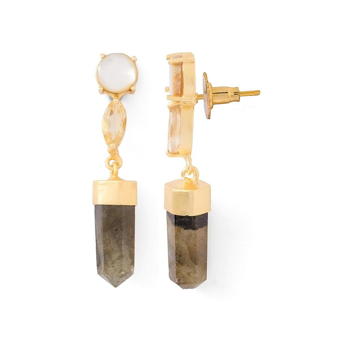 Green-White Stones Adorned Gold Tone Dangler Earrings