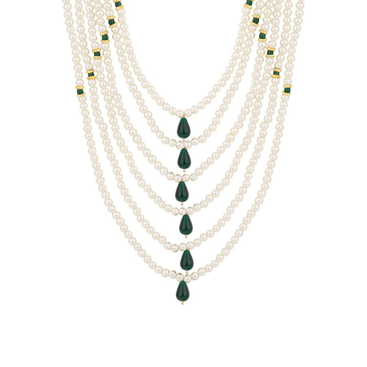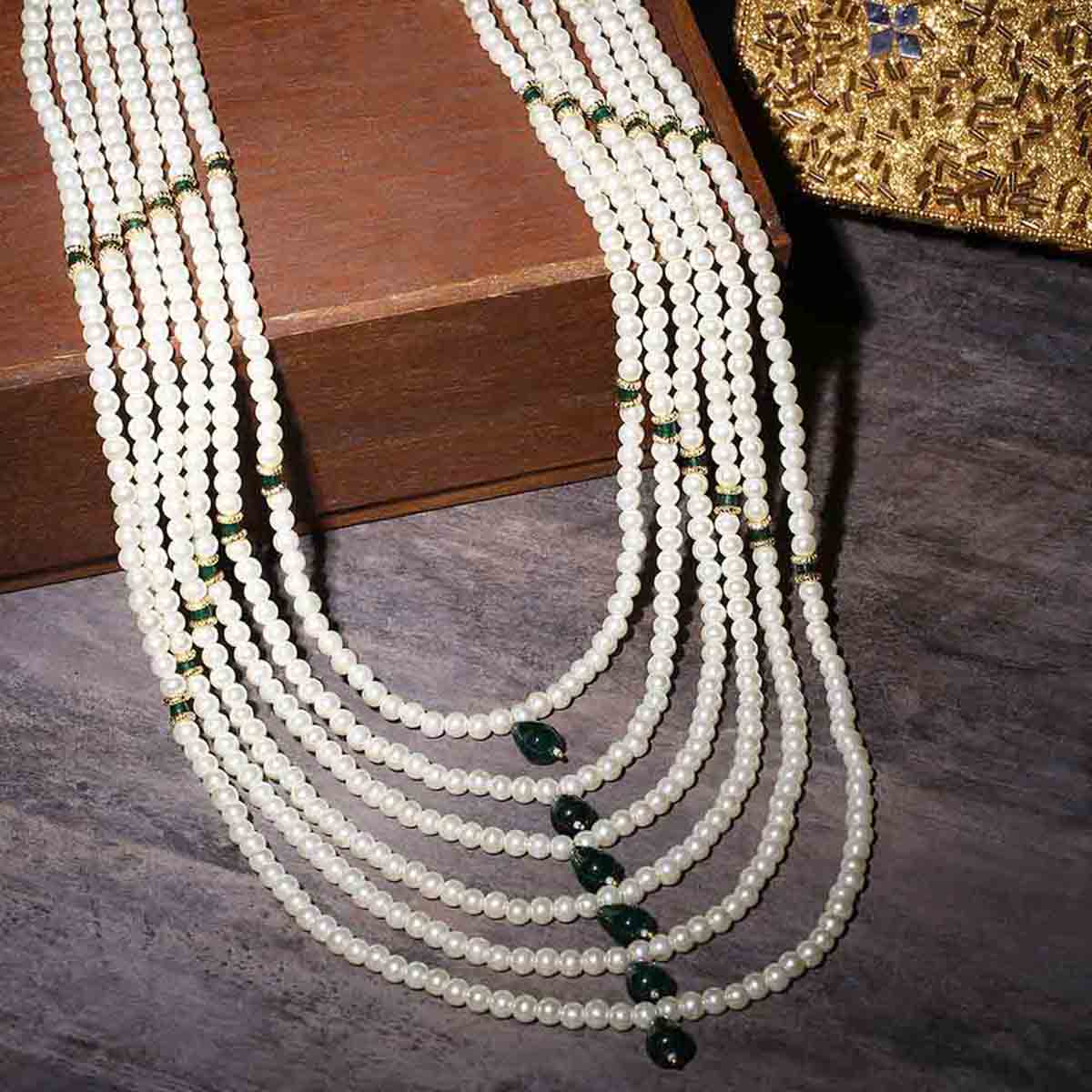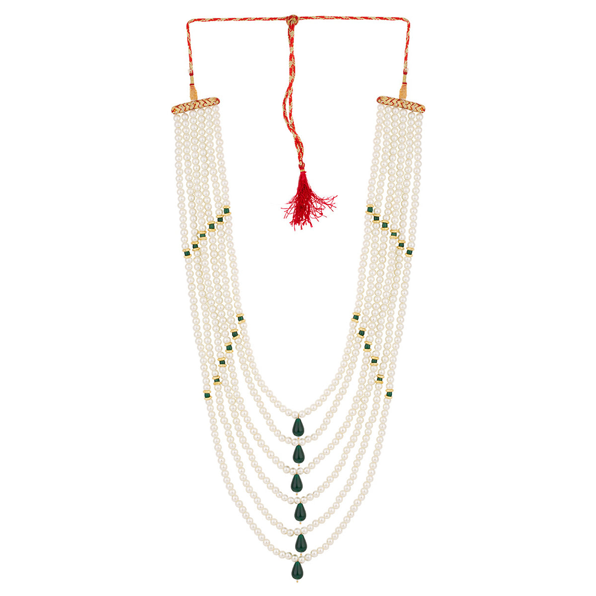 Layered style beaded necklace for men. Made from brass and yellow gold plated. Wear with sherwanis and other ethnic wedding wear. To make your accessories last longer avoid harsh chemicals and moisture. Keep dry, clean with dry cloth and wear with panache. "India’s largest fashion jewelry brand DARE, comes from the House of Voylla as a limited edition of handcrafted accessories for the modern Indian men. "