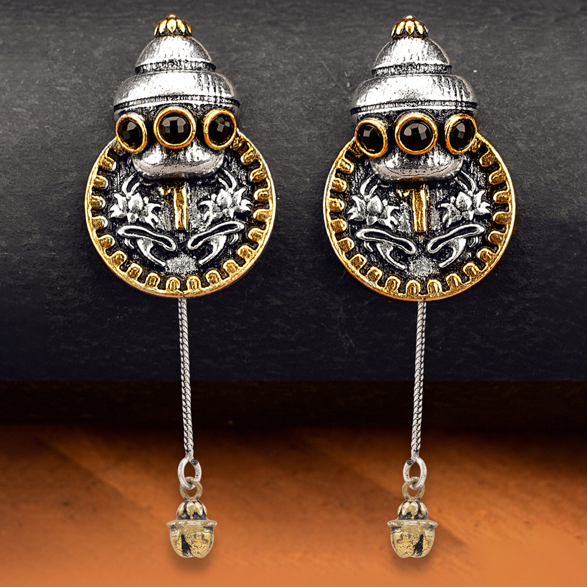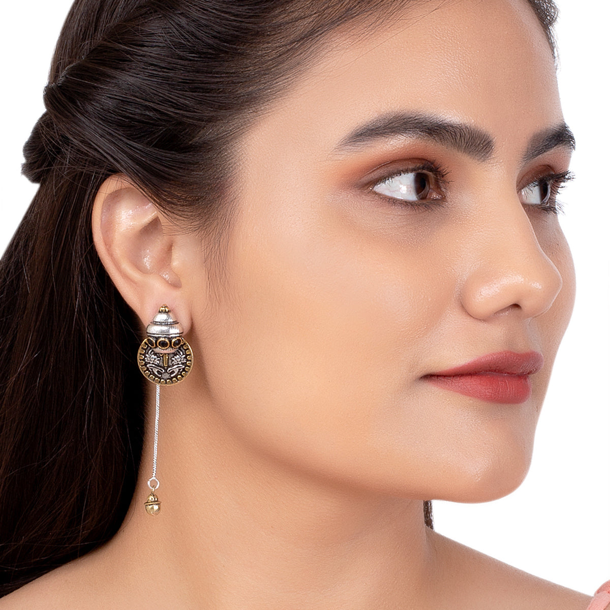 The softness of the elegant Chanderi Silk Kurtis compliments the looks of these earrings, creating a strong look for anyone.Crafted out of brass with dual plating.