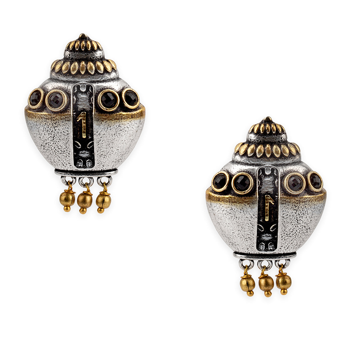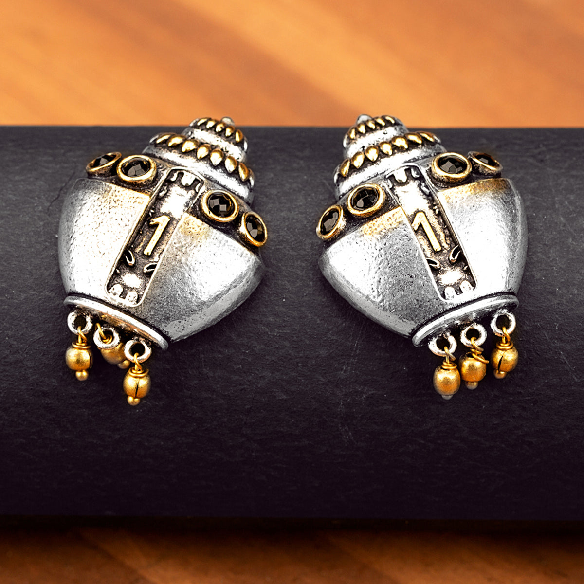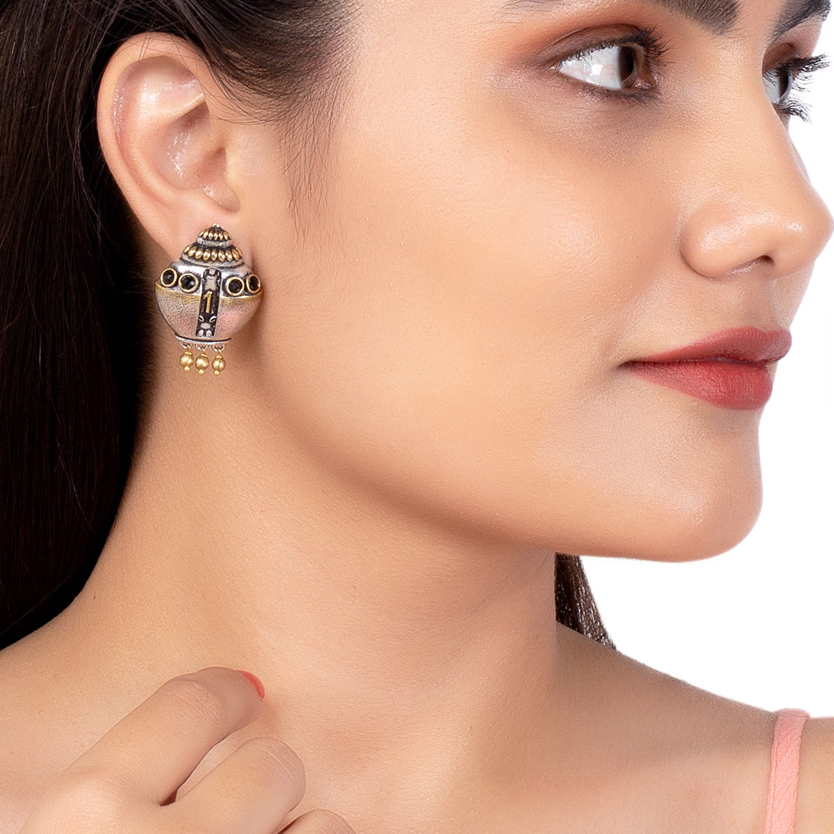 One of the easiest and the most effective ways to garner compliments at work is by flaunting a beautiful pair of stunning earrings.Beautifully crafted out of brass with dual plating.It also features black stones and ghungroo drop that make it more enchanting.You can pair them with a matching ring.