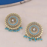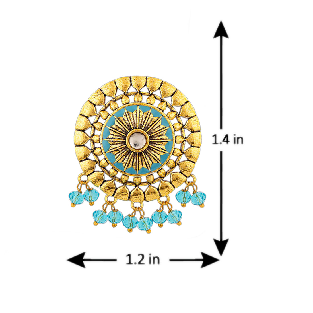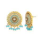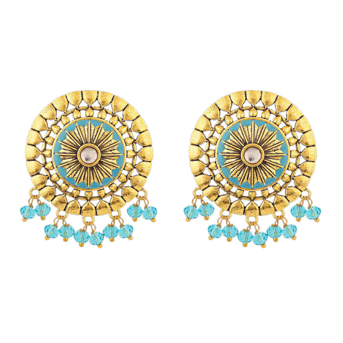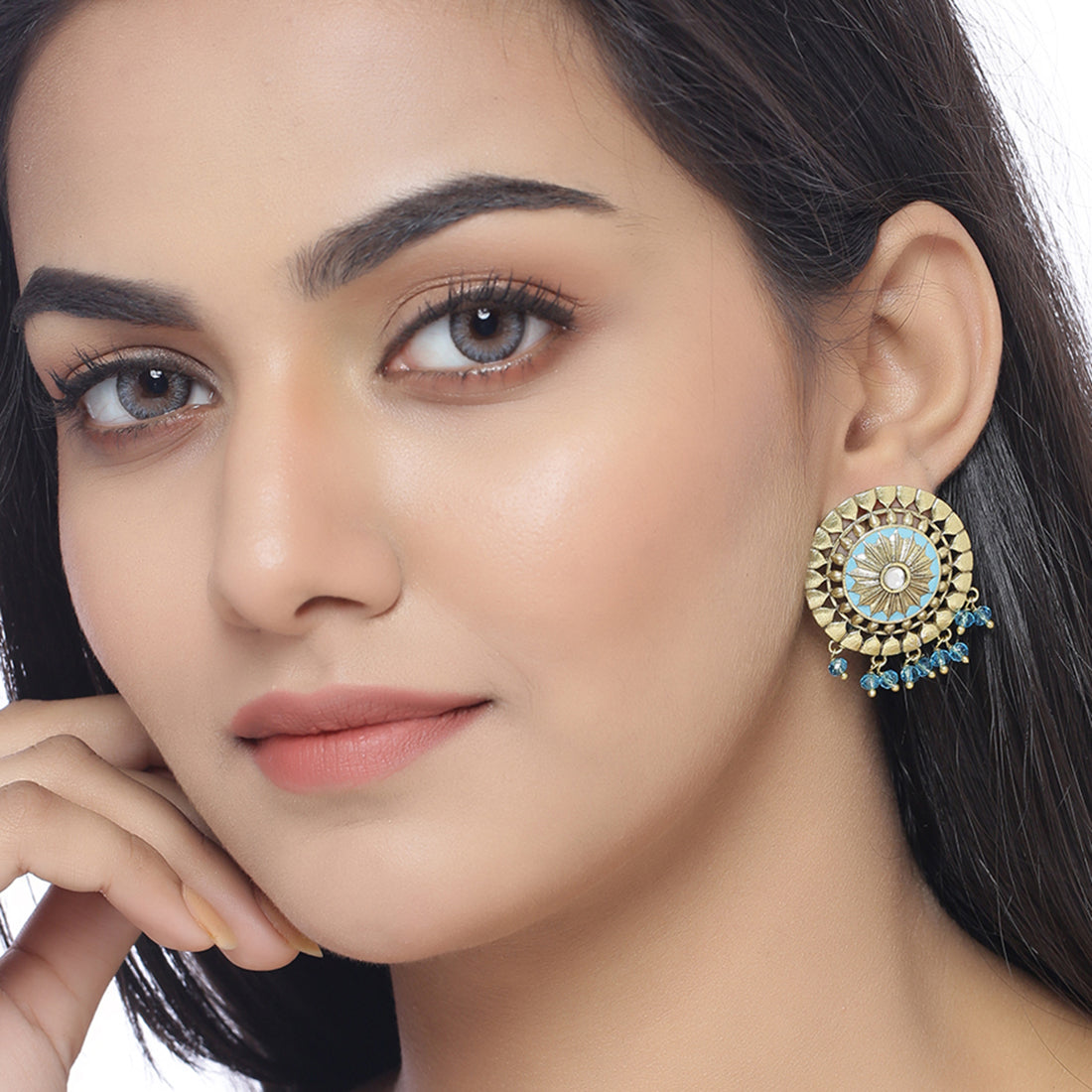 Dome stud style earrings inspired by the fort of Gwalior and its architecture. Oxidised gold plated and enameled, the brass earrings have been lightly embellished and can be paired with Indian and Indo-Western attire. This piece of jewelry comes with the Voylla assurance of quality and durability.