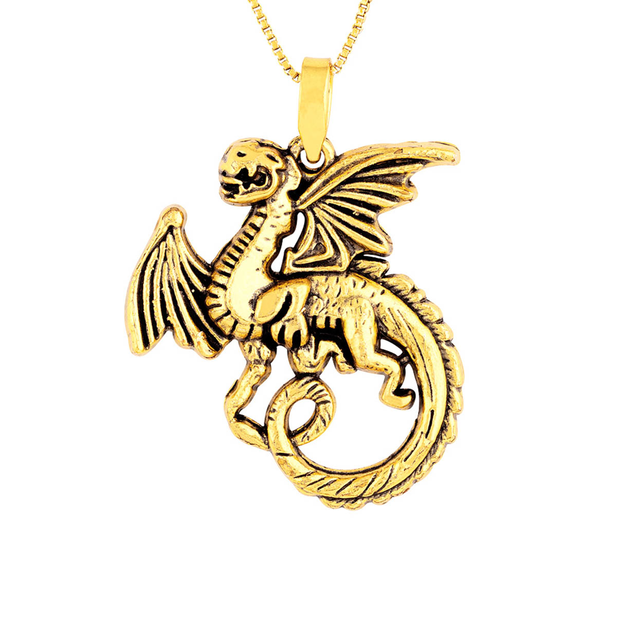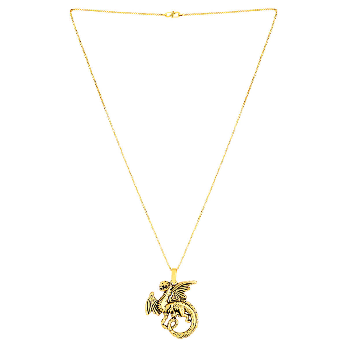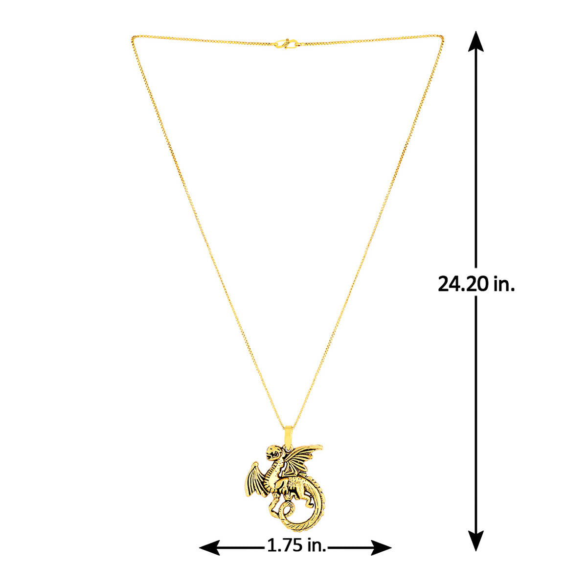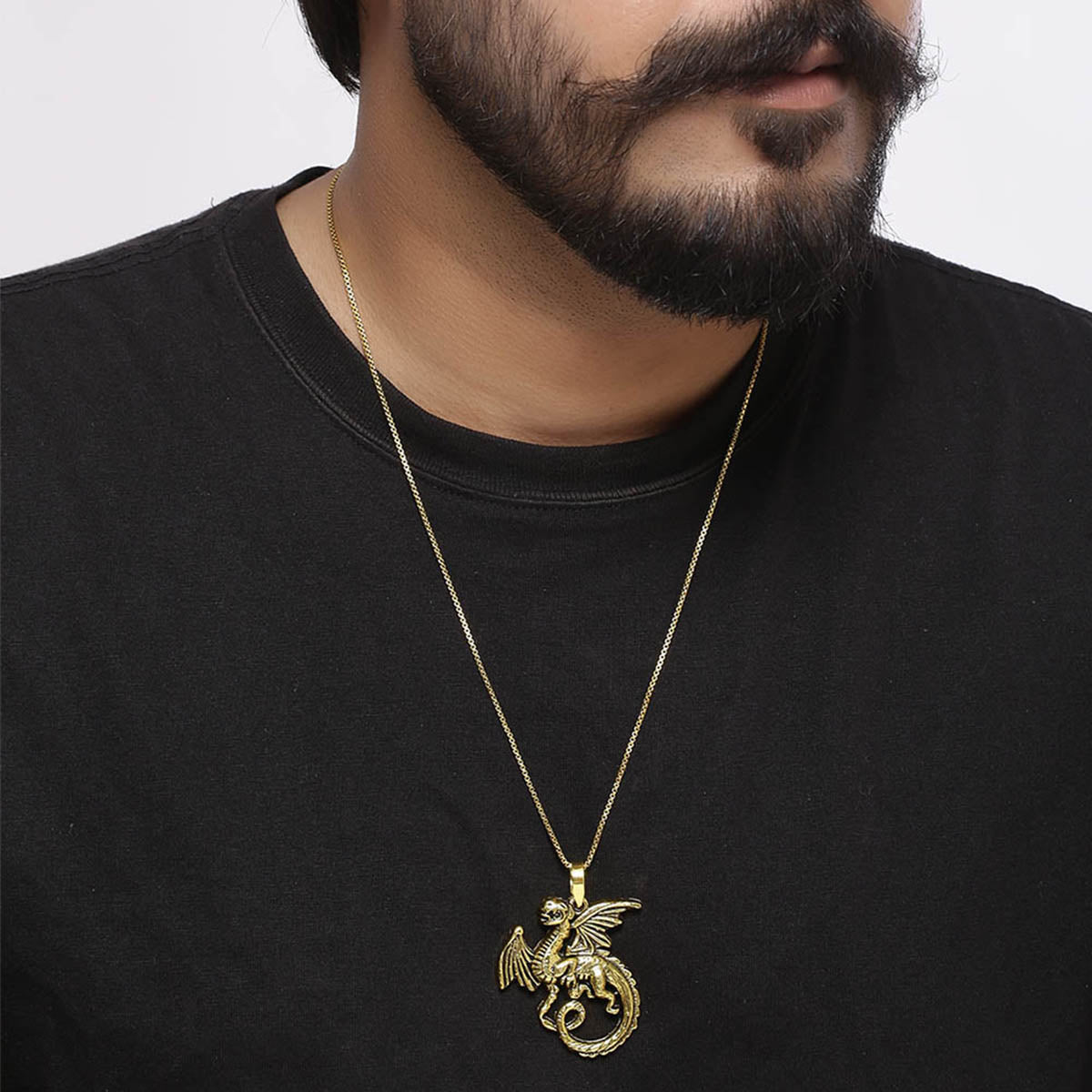 Dragon pendant made from brass and oxidised plated. Pair with a leather jacket. To make your accessories last longer avoid harsh chemicals and moisture. Keep dry, clean with dry cloth and wear with panache. "India?s largest fashion jewelry brand DARE, comes from the House of Voylla as a limited edition of handcrafted accessories for the modern Indian men. "