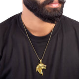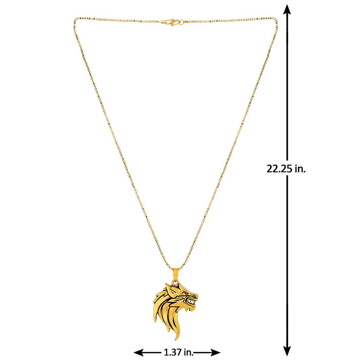 Wolf head pendant for men. Made from brass and yellow gold plated. Pair with casual and party attire. To make your accessories last longer avoid harsh chemicals and moisture. Keep dry, clean with dry cloth and wear with panache. "India’s largest fashion jewelry brand DARE, comes from the House of Voylla as a limited edition of handcrafted accessories for the modern Indian men. "