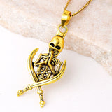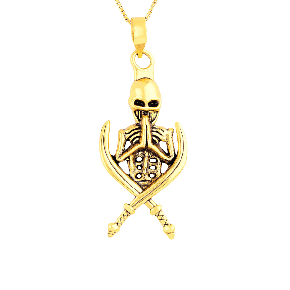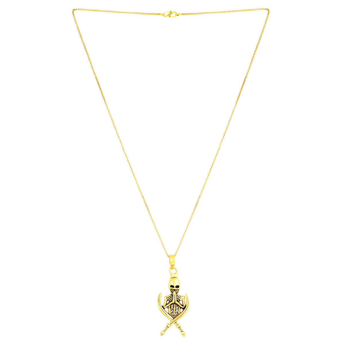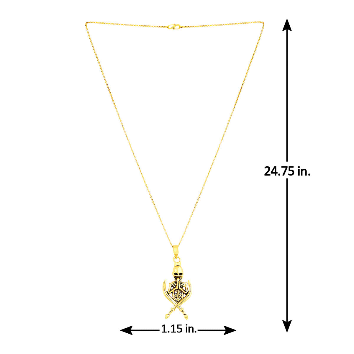 Skeleton pendant made from brass and oxidised plated. Wear with a casual t-shirt and jeans attire. To make your accessories last longer avoid harsh chemicals and moisture. Keep dry, clean with dry cloth and wear with panache. "India?s largest fashion jewelry brand DARE, comes from the House of Voylla as a limited edition of handcrafted accessories for the modern Indian men. "
