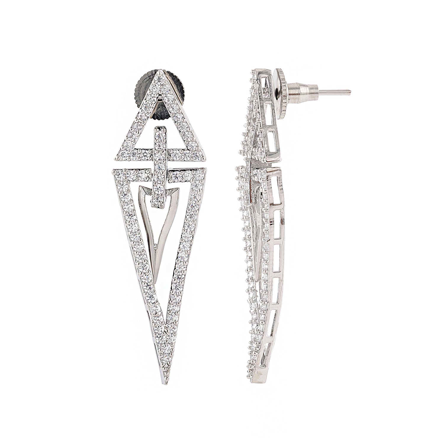 Step into timeless elegance with the Halo Essence Aureole Dangler Earrings, a royal tribute to the beloved halo diamond setting, reimagined in a versatile and chic avatar. Crafted in sturdy brass and adorned with high-shine white rhodium plating, these earrings feature a brilliant CZ centerpiece cradled in a delicate halo of shimmering American diamonds. Whether you're dressing up for a cocktail soirée or adding sparkle to your everyday look, these party-perfect women’s earrings are a style essential. Their adaptable silhouette effortlessly transitions from sophisticated danglers to sleek stud earrings, letting you choose your vibe. Pair them with solid-hued sarees, sharp blazers, or fusion kurtas to dial up the dazzle. A thoughtful gifting idea for weddings, Valentine’s Day, Rakshabandhan, Diwali, Christmas, New Year—or just because. Ideal for a sister, girlfriend, wife, mother, or the woman who loves making a statement with subtle elegance.