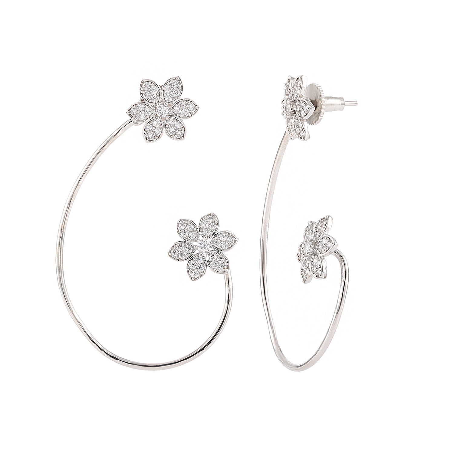 A striking blend of royalty-inspired design and everyday wearability. Plated in radiant white rhodium over premium brass, this floral statement piece dazzles with a central CZ stone embraced by a halo of shimmering American diamonds, echoing one of the most iconic jewelry trends of the last two decades. From wedding wear to cocktail jewelry, this ear cuff doubles as a stud earring too — giving you the flexibility to style it your way. Whether teamed with fusion kurtas, elegant sarees, western co-ords, or festive lehengas, the look is always luminous and on-point. Part of the Halo Essence Collection, which celebrates the heirloom-worthy halo setting, this design is ideal for gifting on Valentine’s Day, Diwali, Rakshabandhan, Christmas, or just because she deserves something royal. A gorgeous pick for wives, girlfriends, mothers, sisters, and your forever besties, it's the perfect women's gift — equal parts emotional and dazzling.