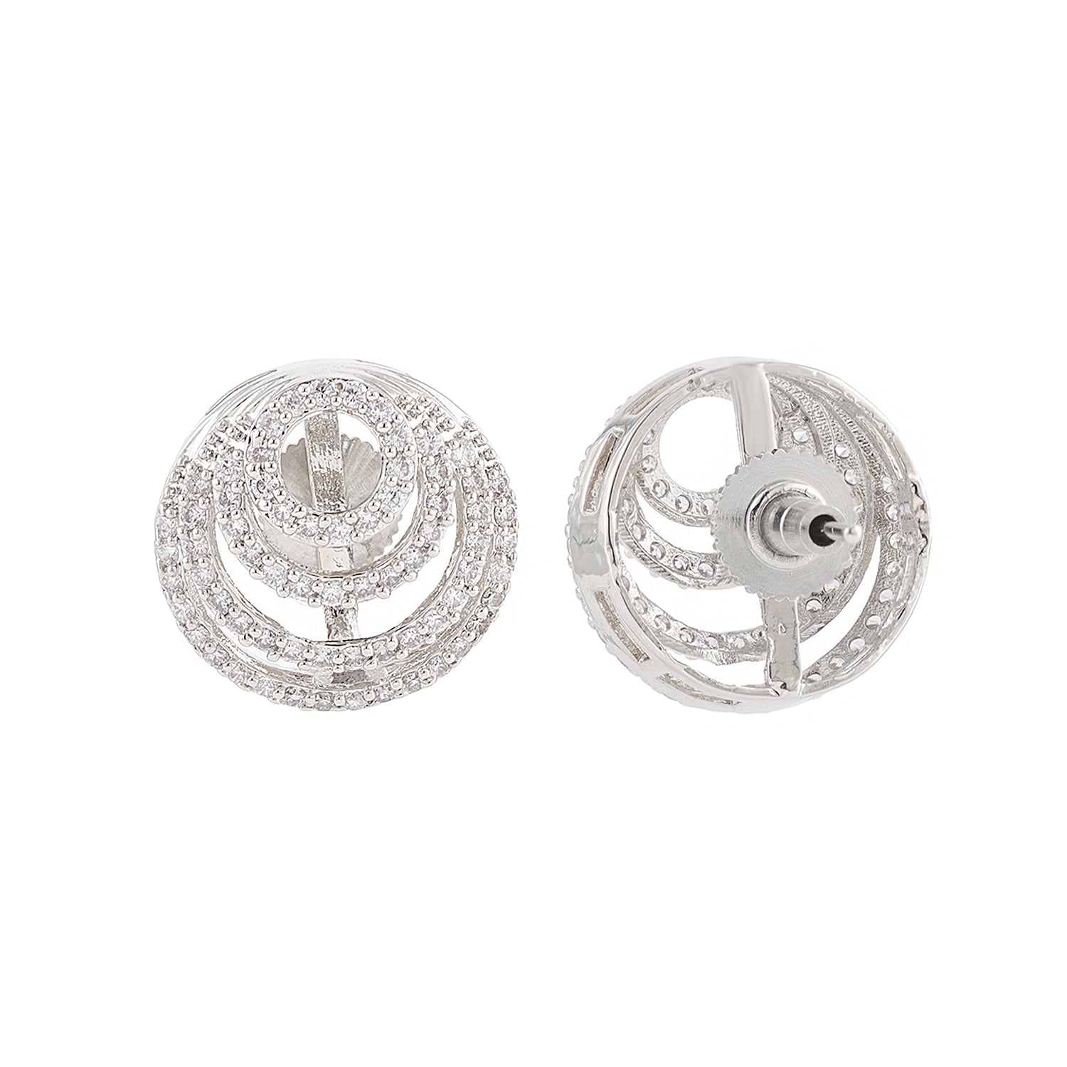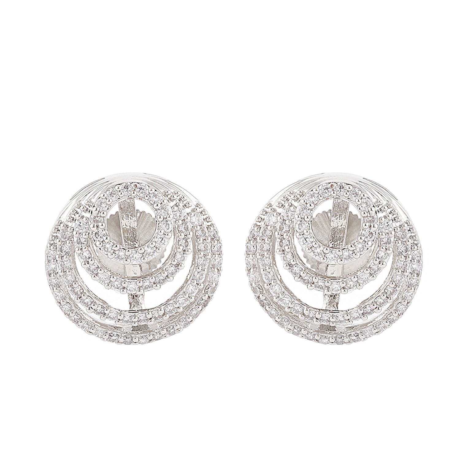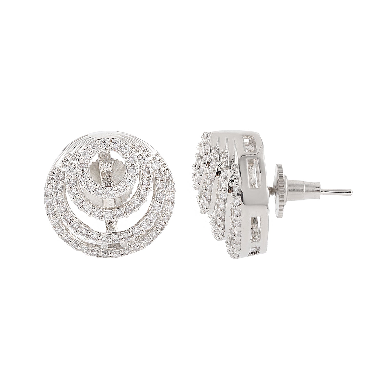 Step into the spotlight with the Halo Essence Circular Disk Stud Earrings, crafted in high-quality brass and finished with a luminous white rhodium plating, these earrings are a radiant tribute to the iconic halo diamond setting. At the heart of each stud lies a brilliant-cut CZ stone, encircled by a shimmering halo of petite American diamonds that catch the light with every turn. Inspired by the elegance of royalty and red-carpet fashionistas, this design blends vintage charm with modern chic, making it perfect for cocktail evenings, wedding wear, or everyday glamour. Whether you're styling it with a sleek saree, a fusion kurta set, or a contemporary gown, these earrings add a refined sparkle that elevates any look. A thoughtful gift for Valentine’s Day, Rakshabandhan, Diwali, or Christmas, they’re ideal for sisters, girlfriends, wives, mothers or anyone who deserves a touch of timeless brilliance. From statement moments to subtle elegance, these stud earrings are your go-to for party-ready sparkle and heartfelt gifting.