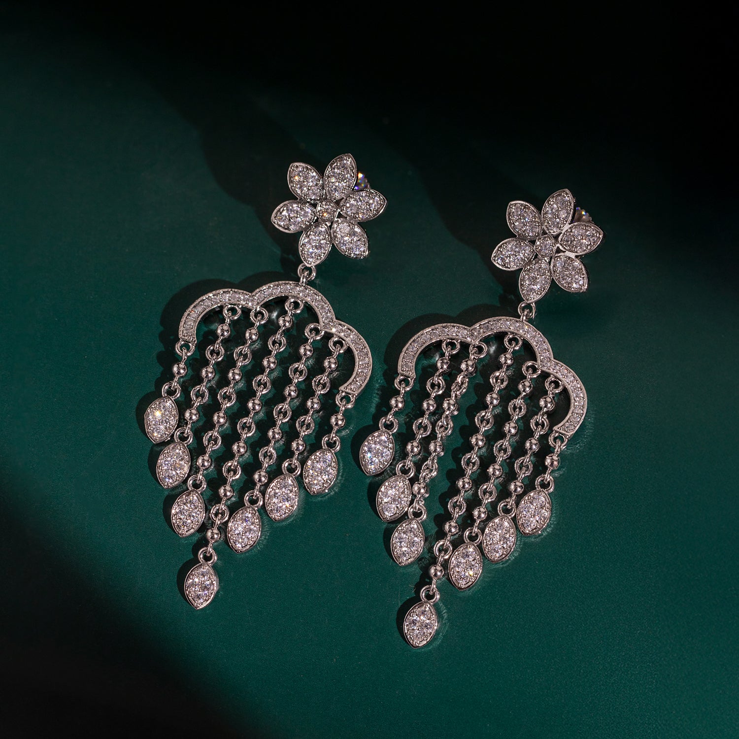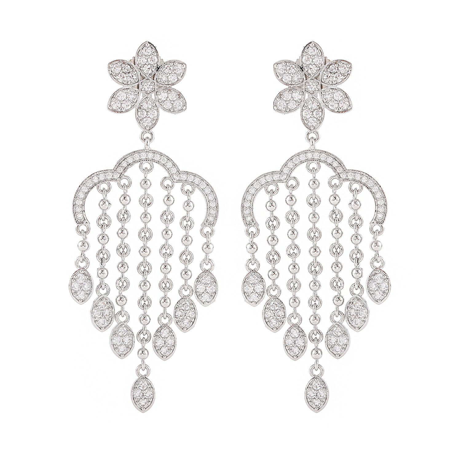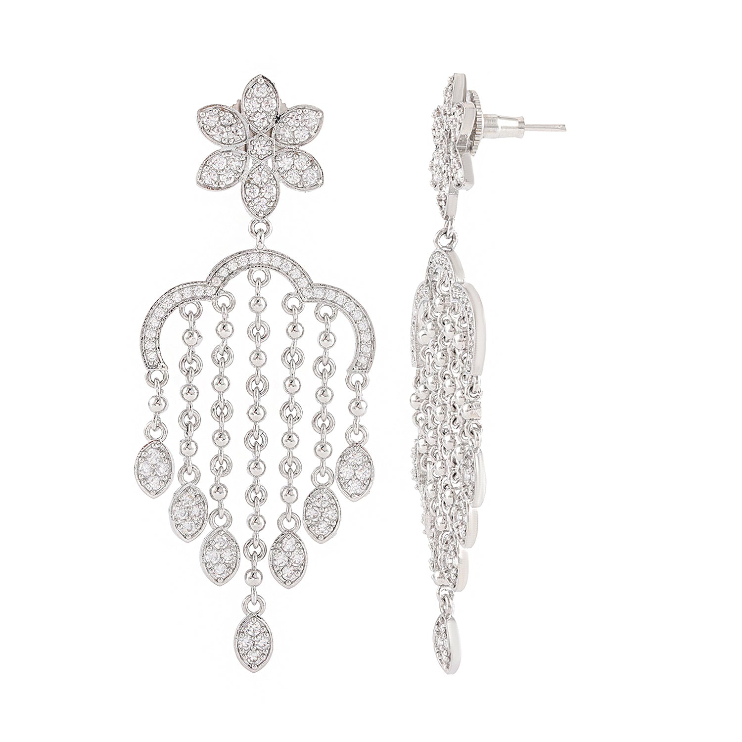 Step into the spotlight with the Halo Essence Floral Dangler Earrings, a radiant blend of timeless halo design and modern floral charm. Crafted in premium brass and finished with luminous white rhodium plating, these earrings feature a brilliant CZ centerpiece surrounded by a halo of shimmering stones, echoing the elegance of heirloom treasures. Inspired by the iconic halo diamond setting loved by fashionistas and royalty alike, this pair brings a touch of regal sophistication to your everyday and festive looks. Whether you're dressing up for a cocktail party, wedding celebration, or a casual brunch, these statement earrings pair effortlessly with ethnic ensembles, fusion wear, or even a crisp white shirt and jeans. Their versatile charm makes them a perfect gift for women across occasions, be it Valentine's Day, Diwali, Rakshabandhan, Christmas, or New Year. A thoughtful pick for your sister, girlfriend, wife, mother, or best friend, these earrings are more than just accessories, they're a celebration of style, sentiment, and sparkle.
