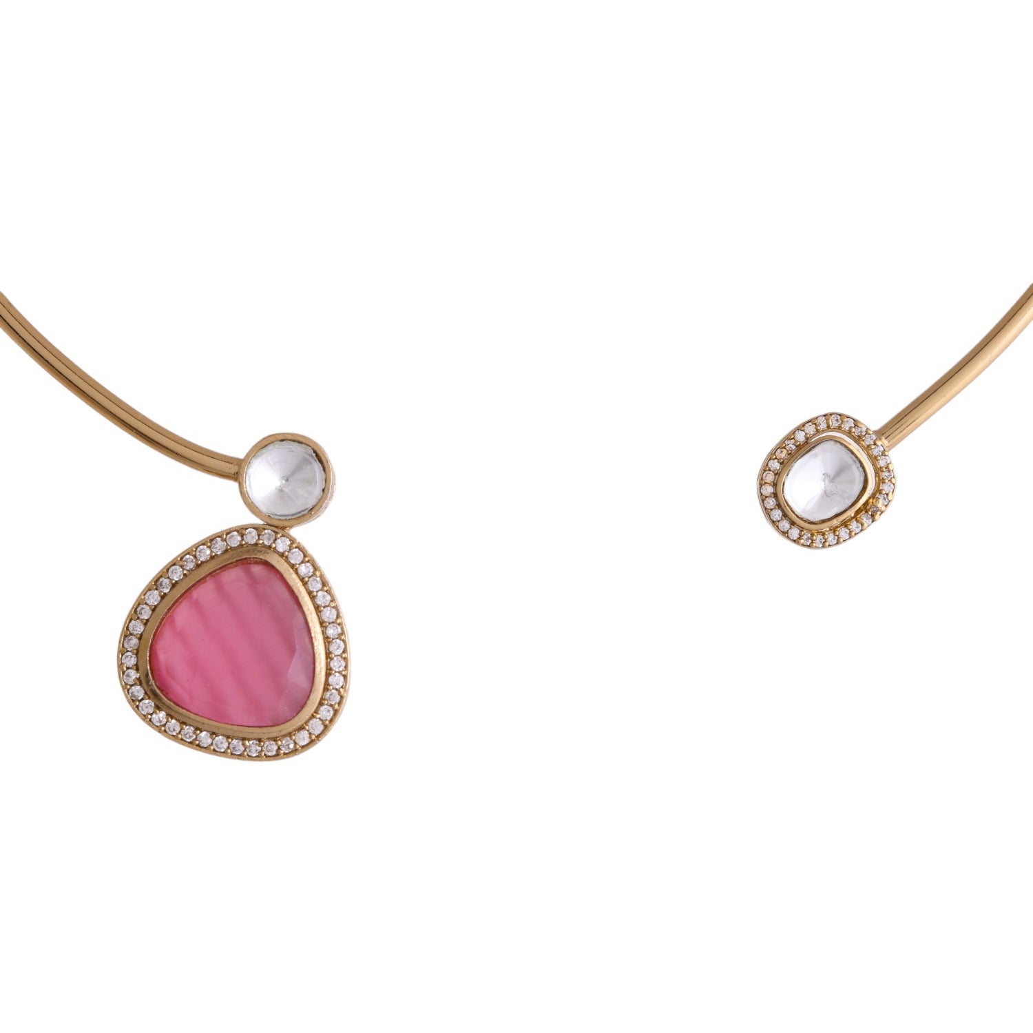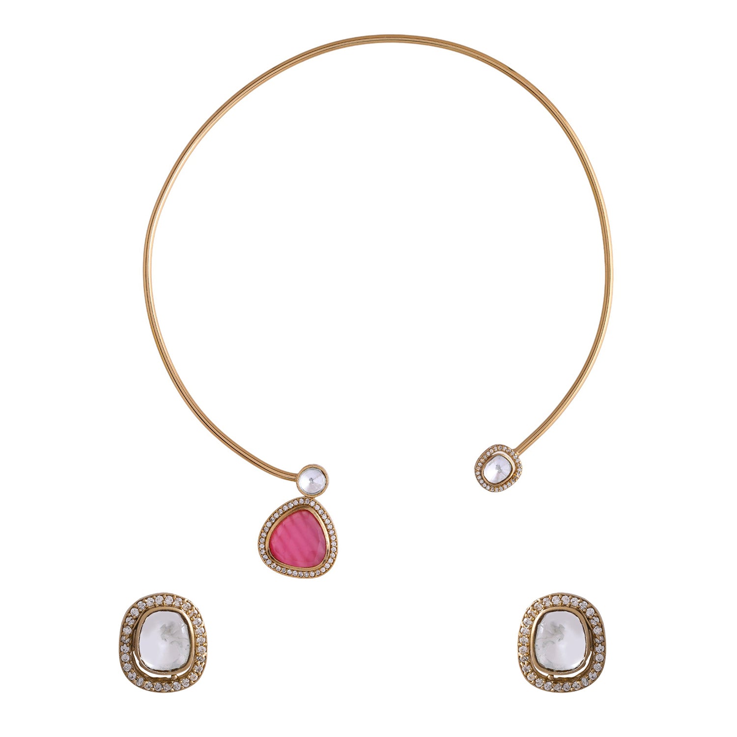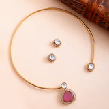 Hasli Radiant Pink And White Kundan Stone Golden Necklace Set