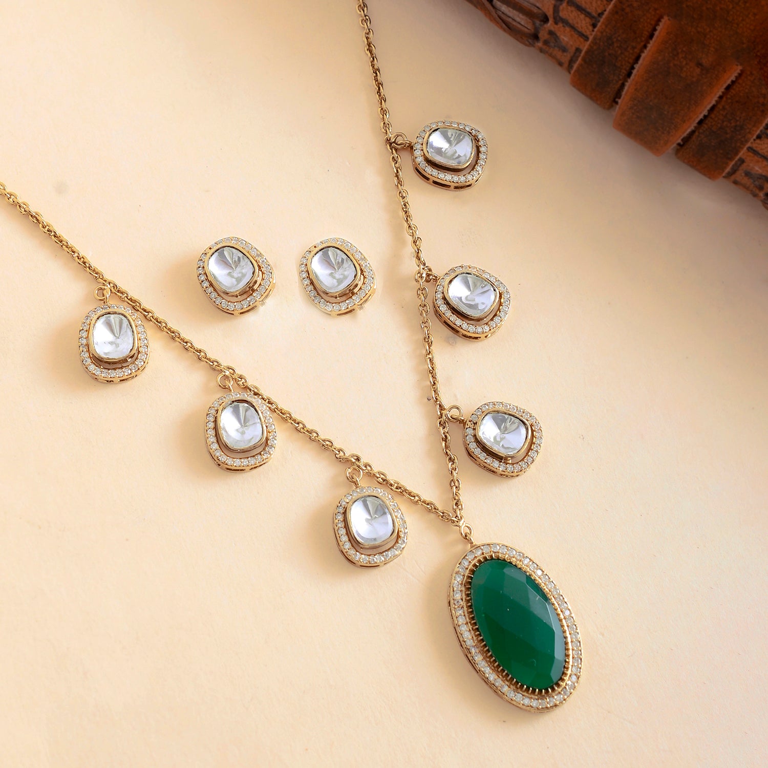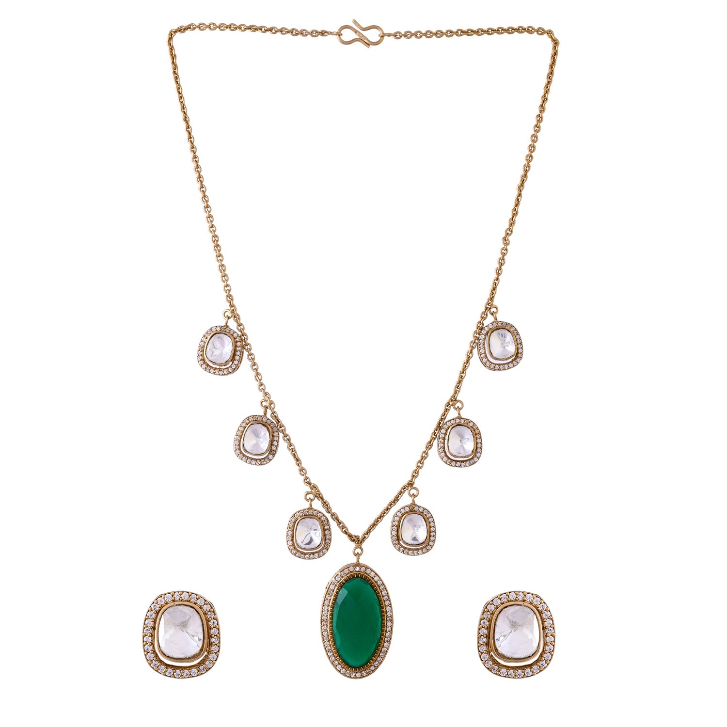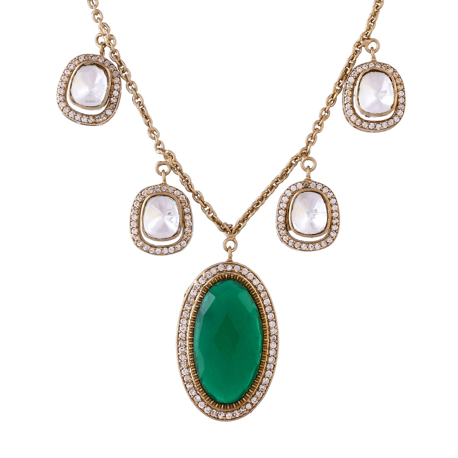 Hasli Regal Heritage Green Kundan Studded Gold Necklace Set