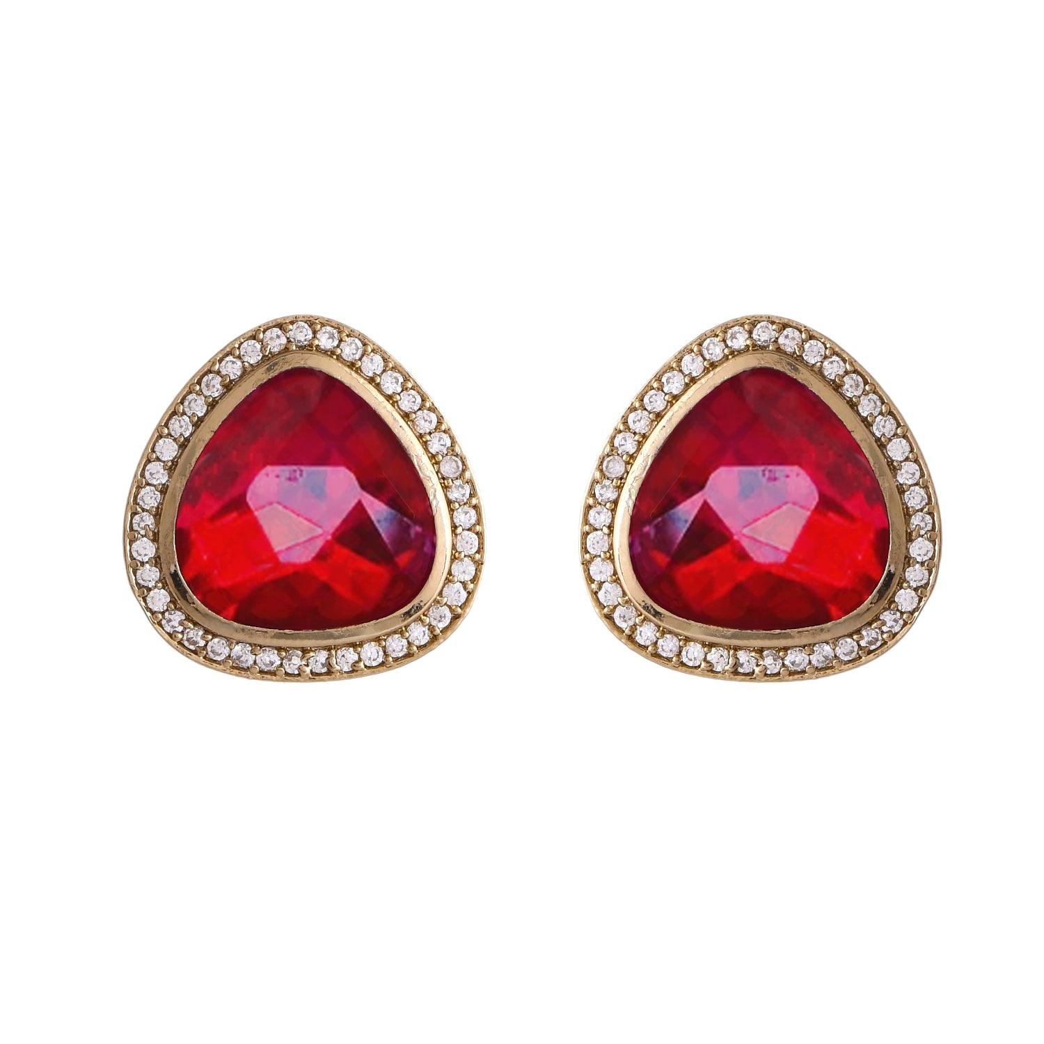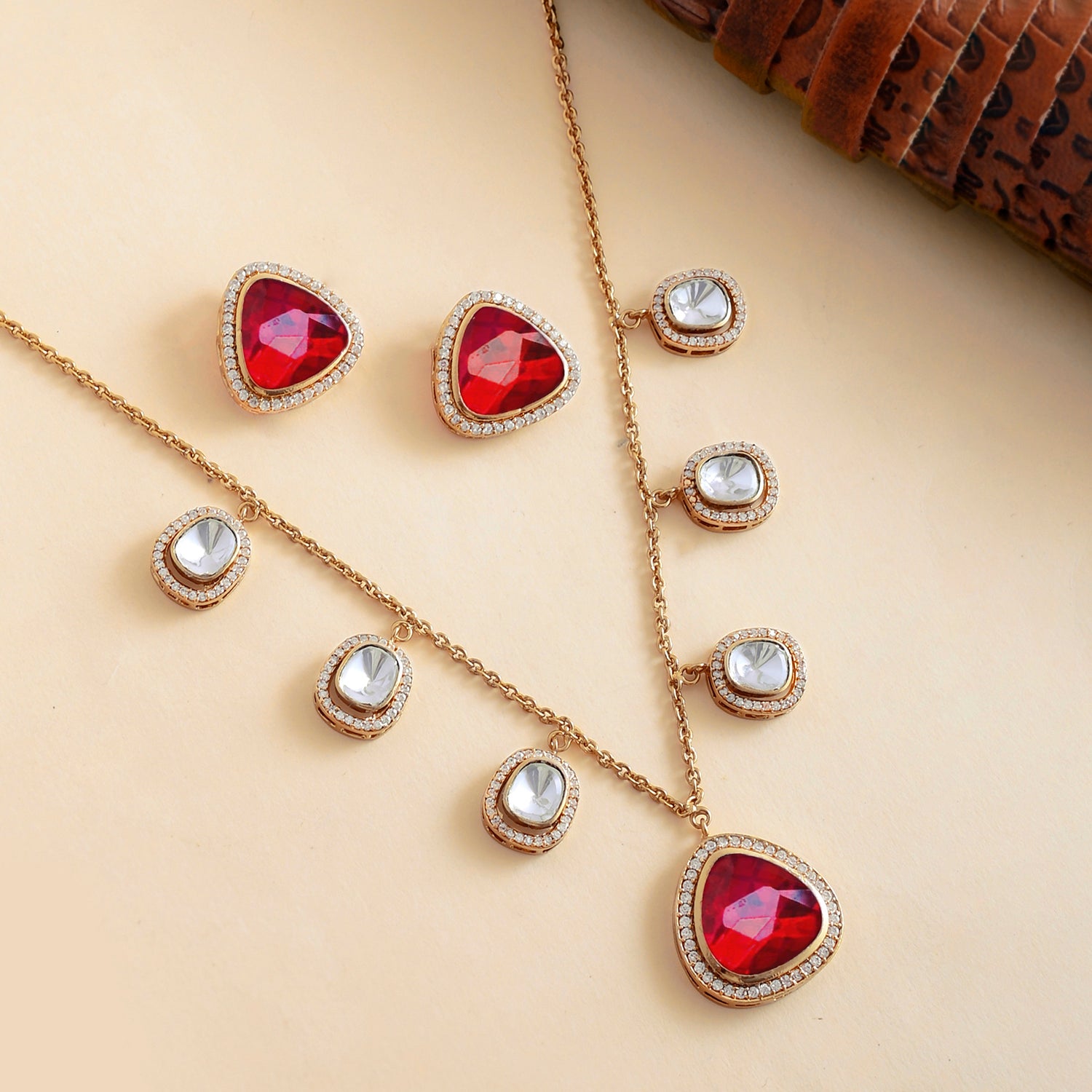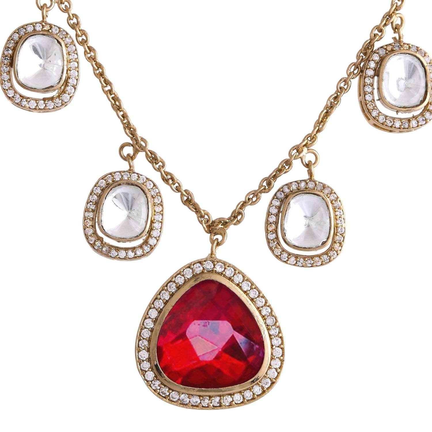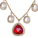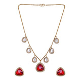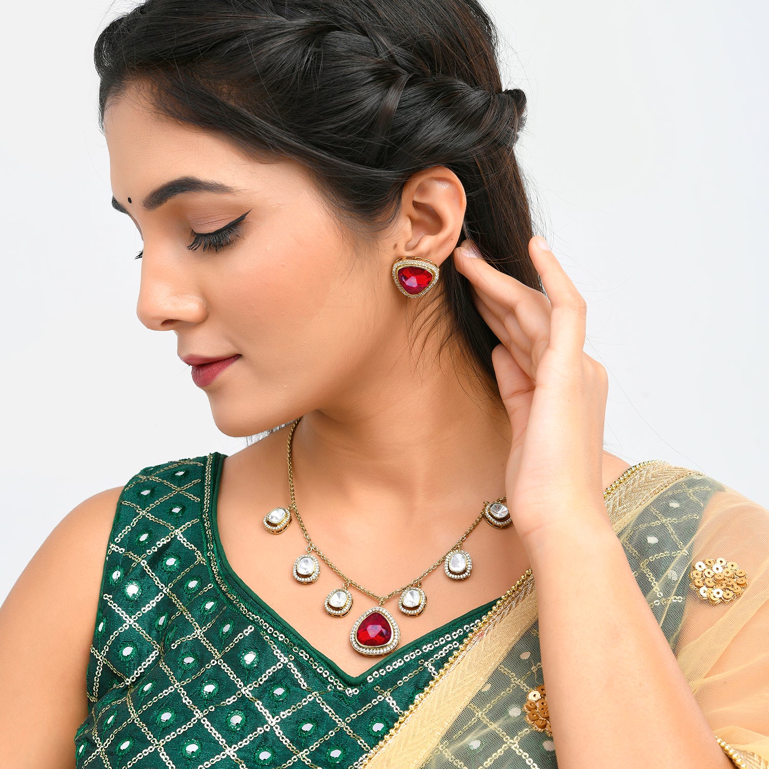 Hasli Regal Radiance Red Kundan Embellished Golden Necklace Set
