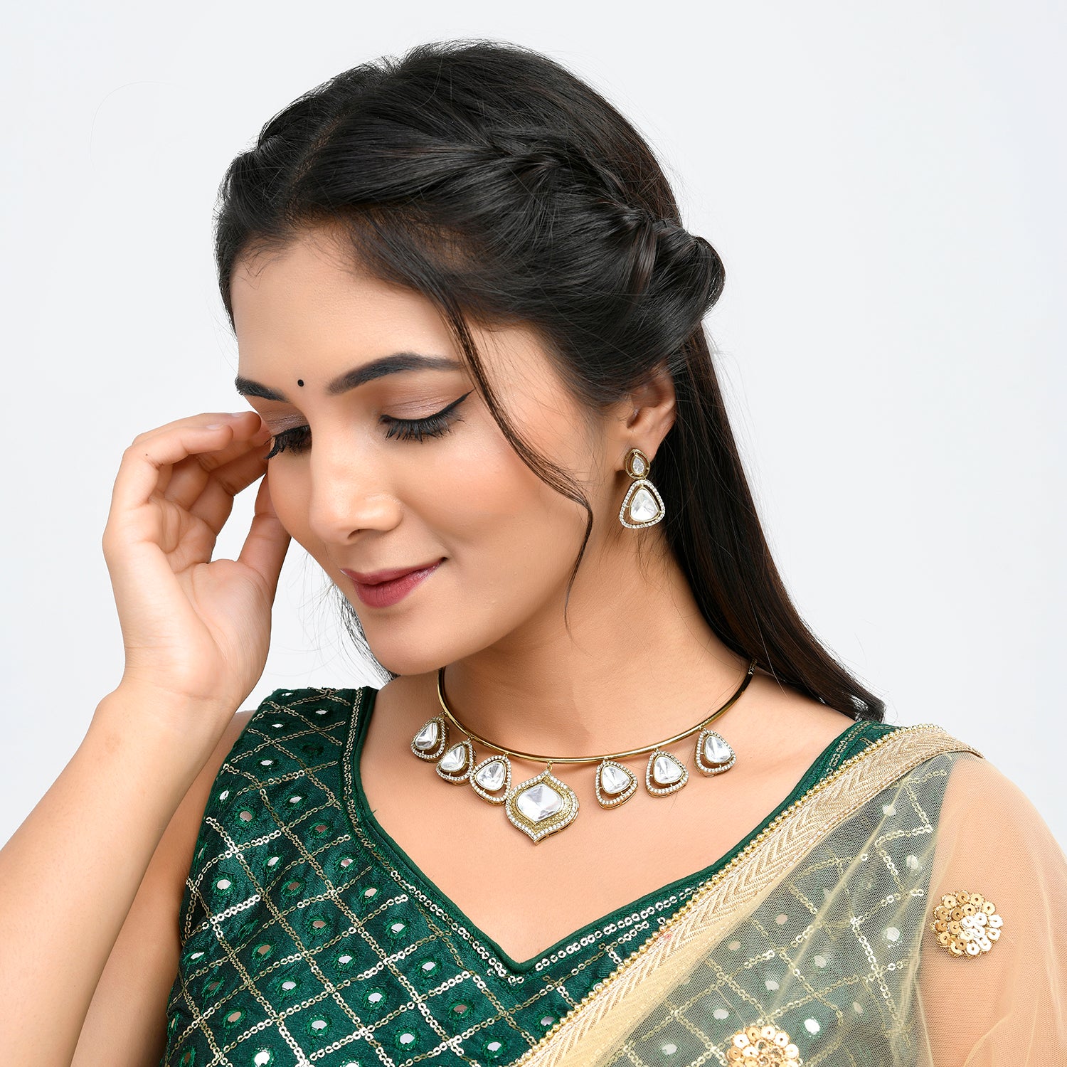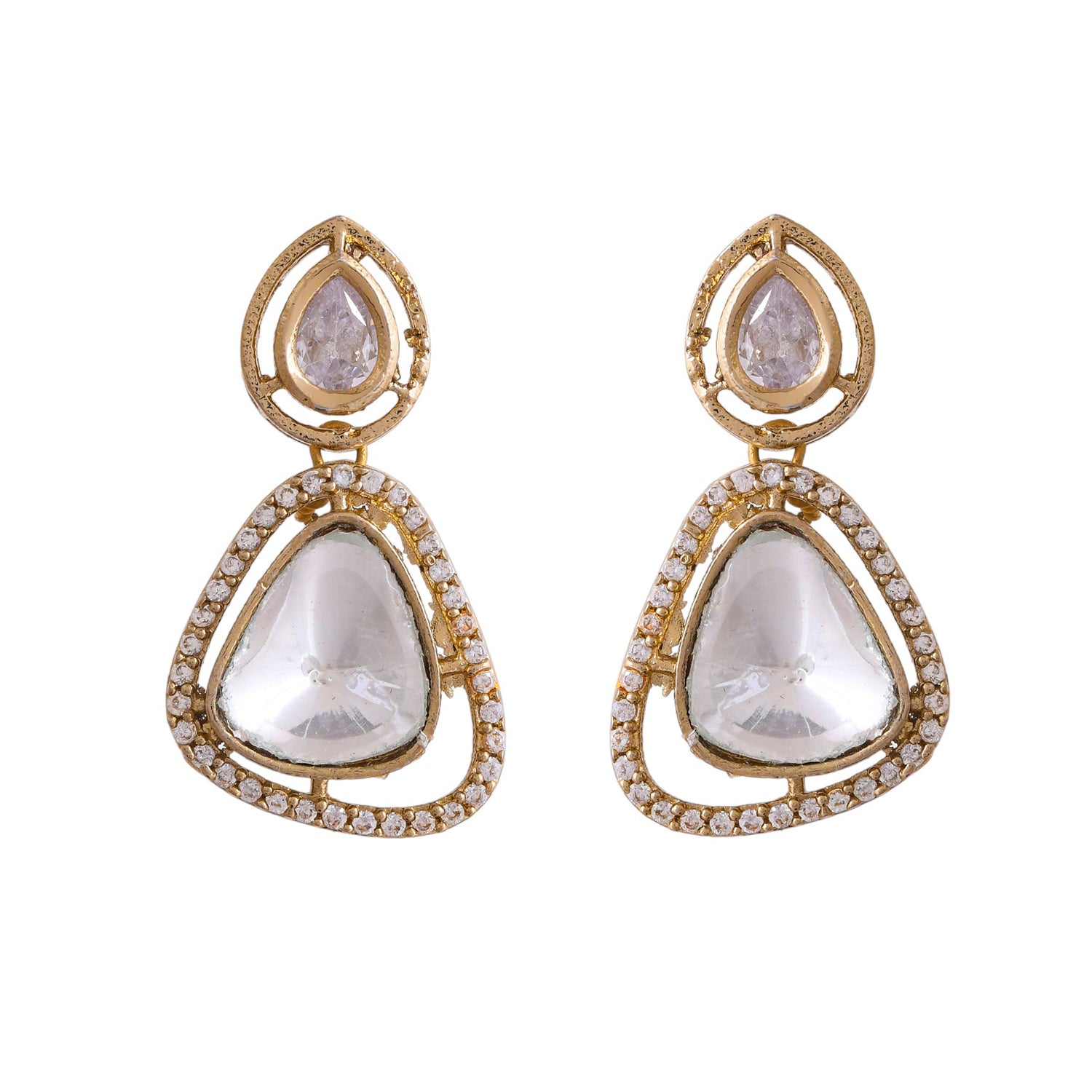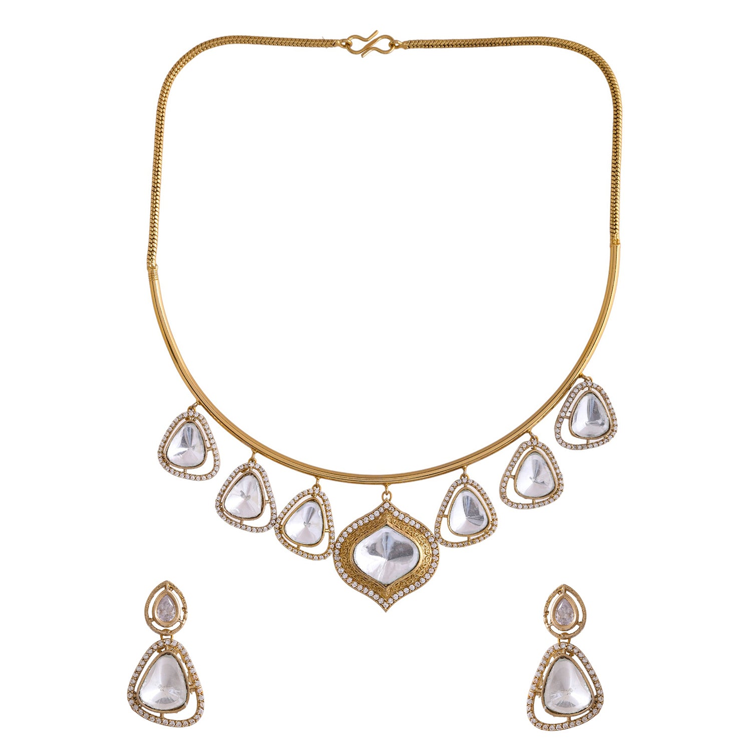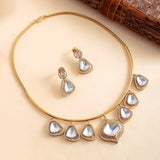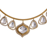 Hasli Teardrop Twist White Kundan Stone Golden Necklace Set