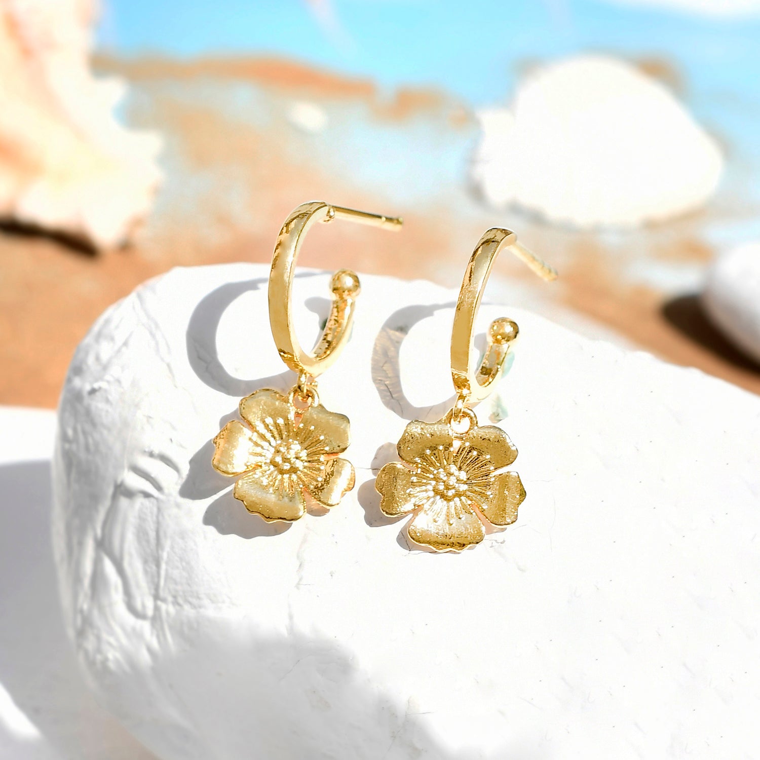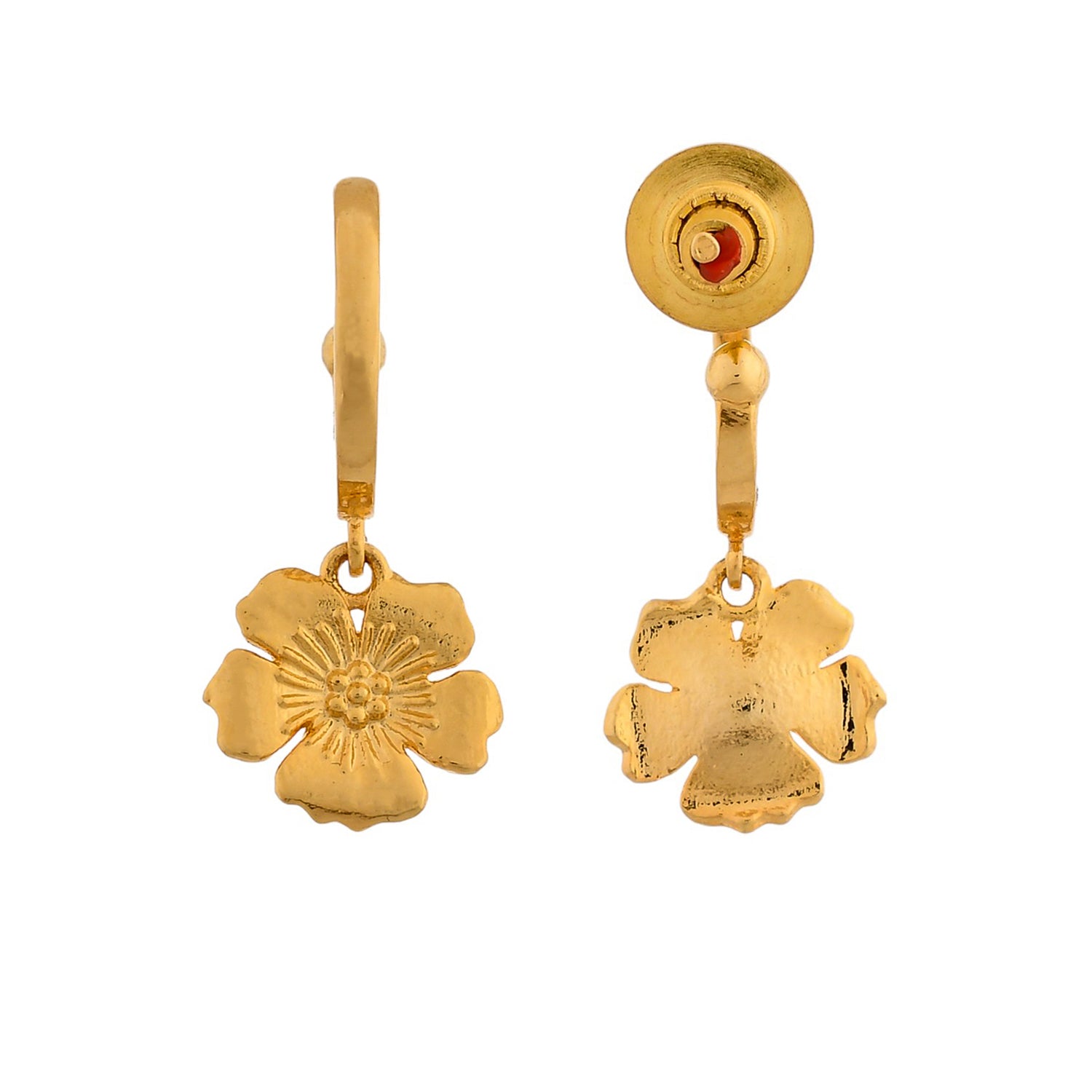 The beautiful beach and tropical elements found across the world have inspired these casual drop style earrings. Made from brass and featuring dainty floral motifs, the gold plated earrings will look splendid when paired with beachwear.