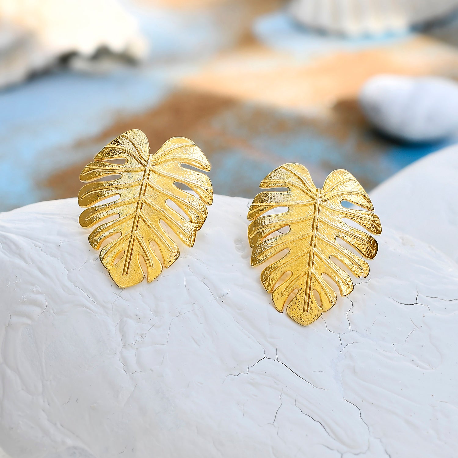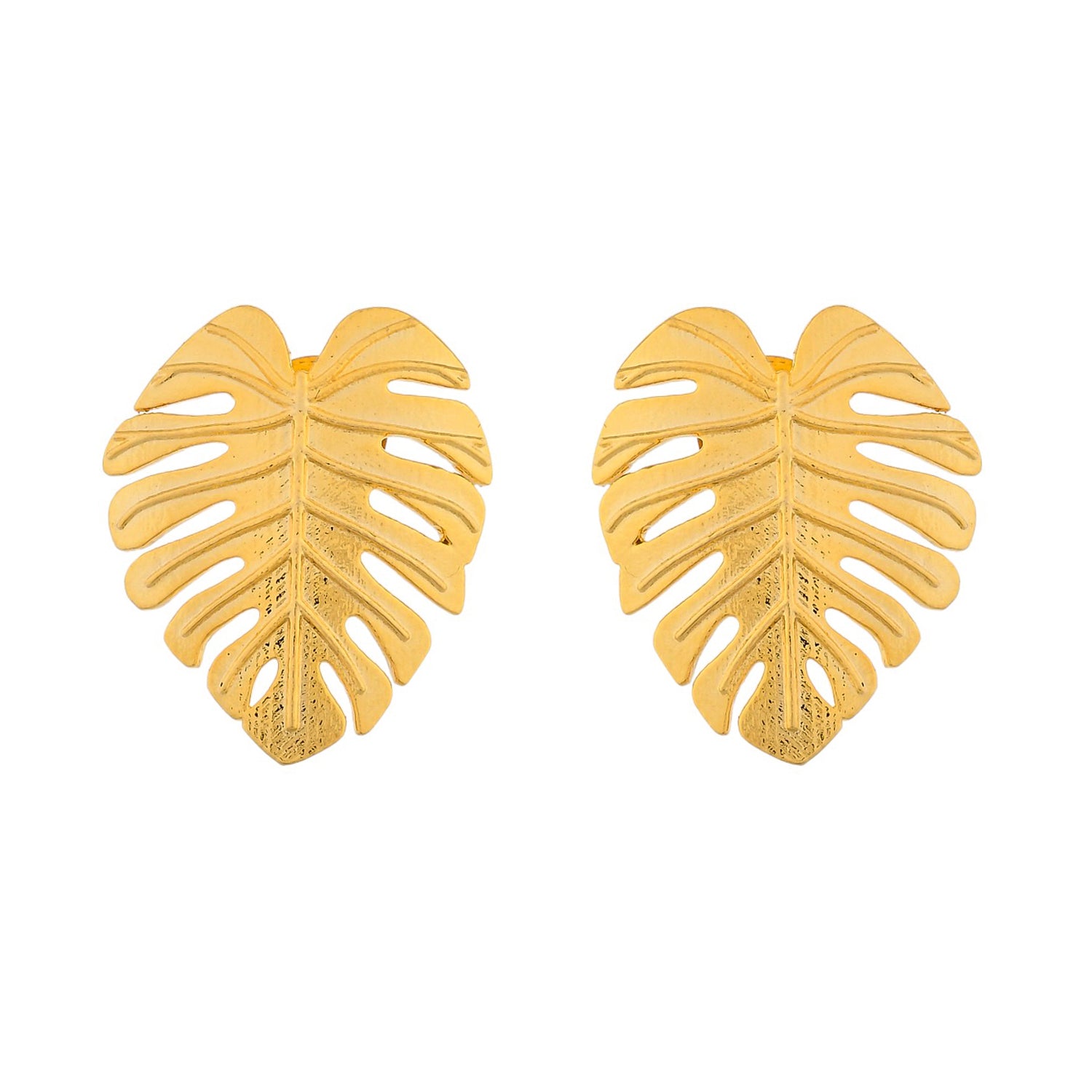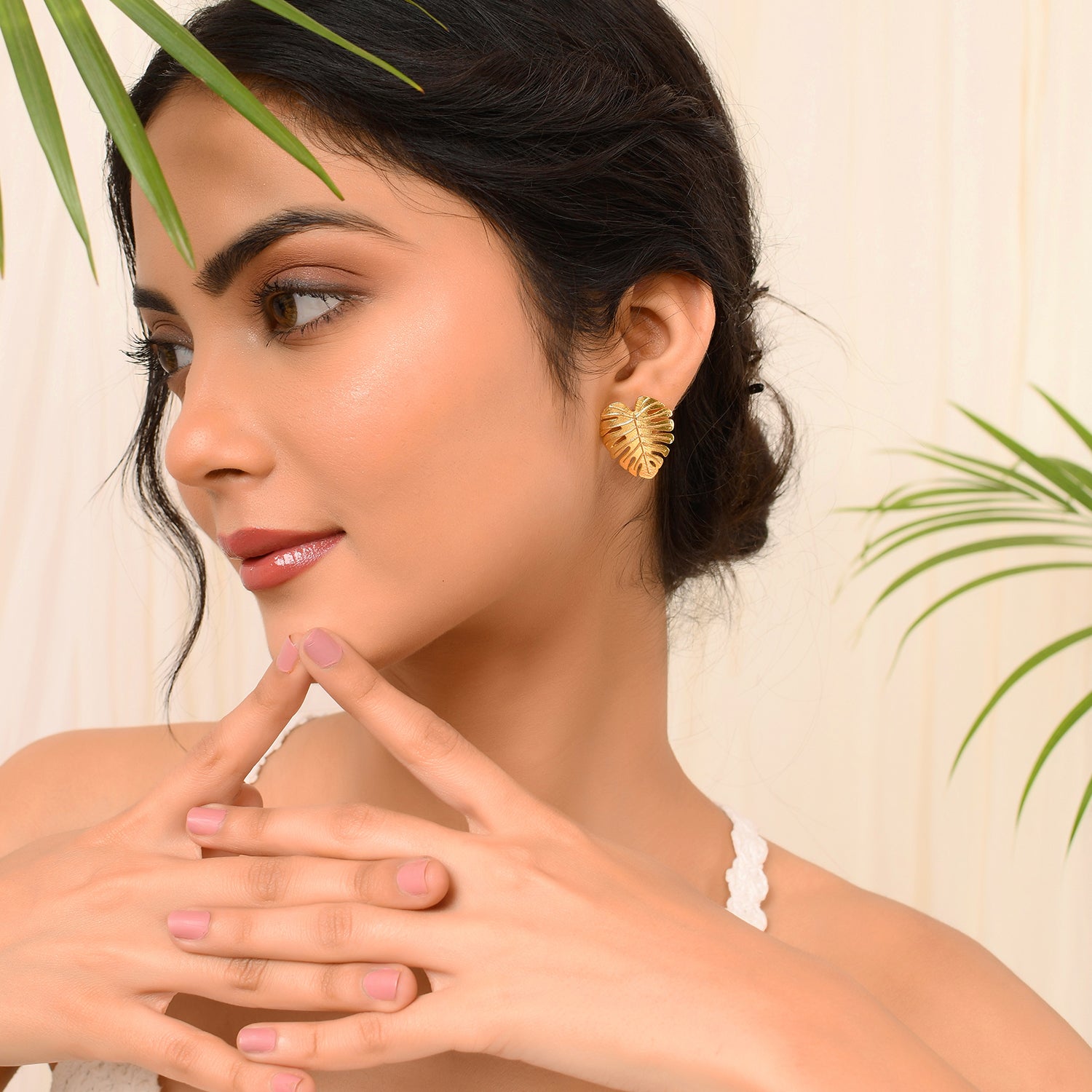 Inspired by the gorgeous palm leaf and the grace of the tropics, these stud earrings have been fashioned out of brass into a gorgeous leaf design. Gold plating adds to the charm of this lightweight, quirky and versatile pair.