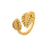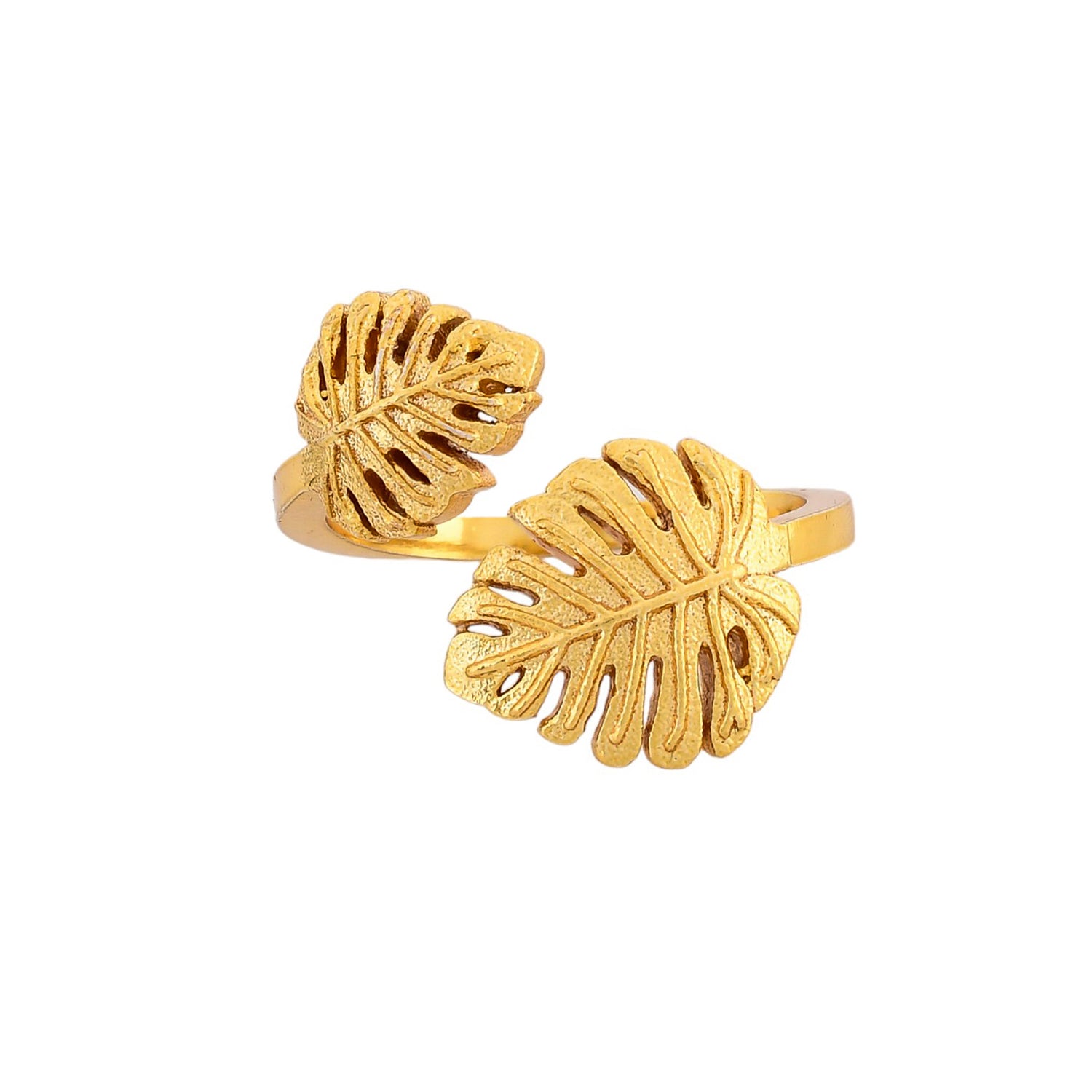 Inspired by the tropical elements that make beaches an absolute favourite of many, this overlap design ring features dainty palm leaf motifs. Made from brass and yellow gold plated, the ring is adjustable for maximum comfort and will pair well with all your favourite outfits.
