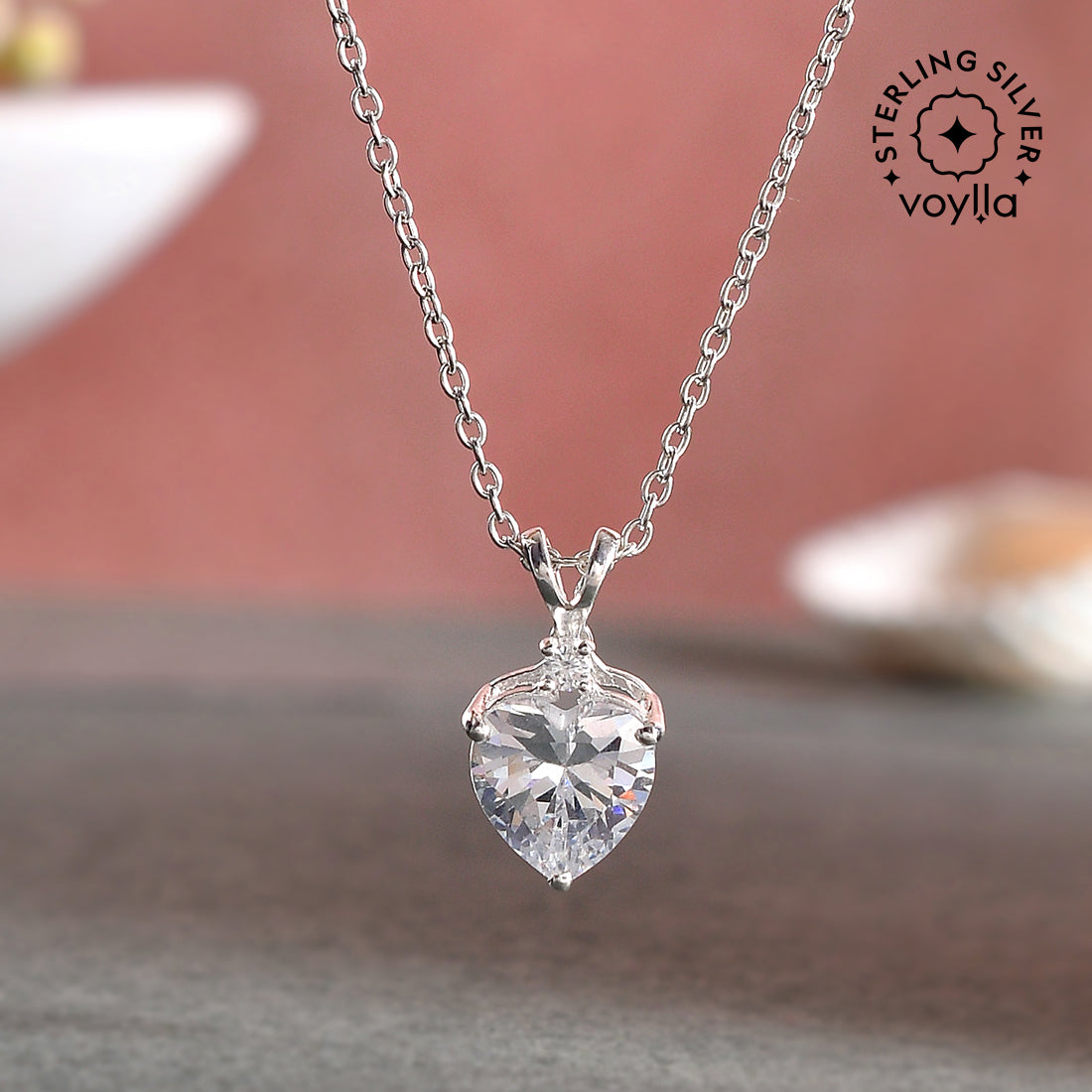 A true classic in every sense of the word, this sterling silver pendant with chain will make your look more adorable and charming. Embellished with diamond sparkles, it is perfect jewelry to wear all day long.