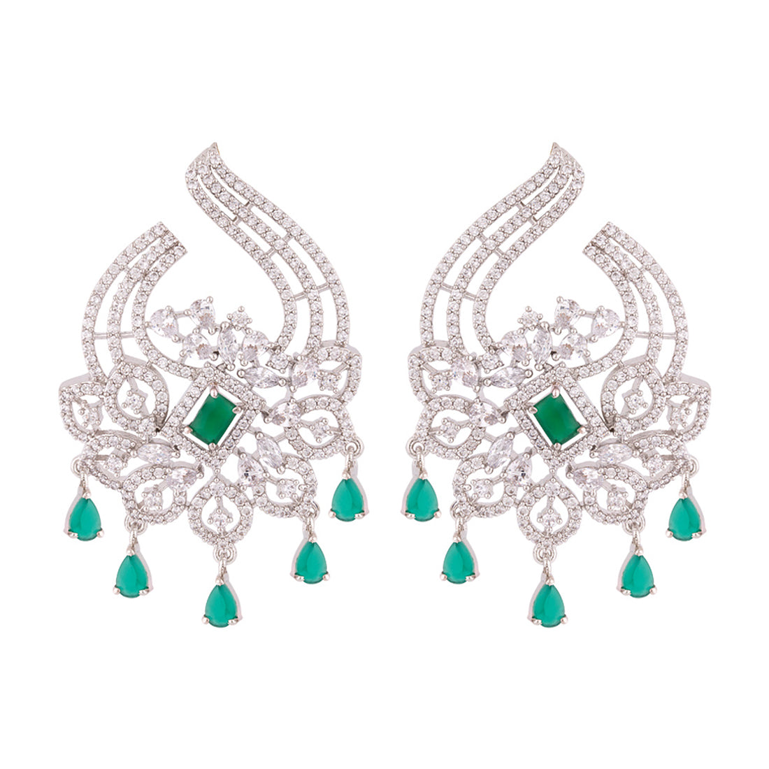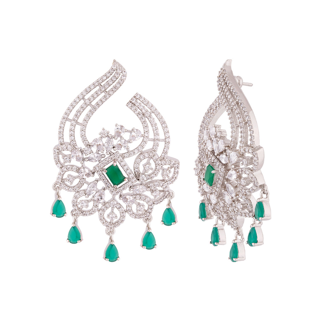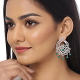 Heavily embellished brass earrings with silver plating. Pair with a cocktail dress.