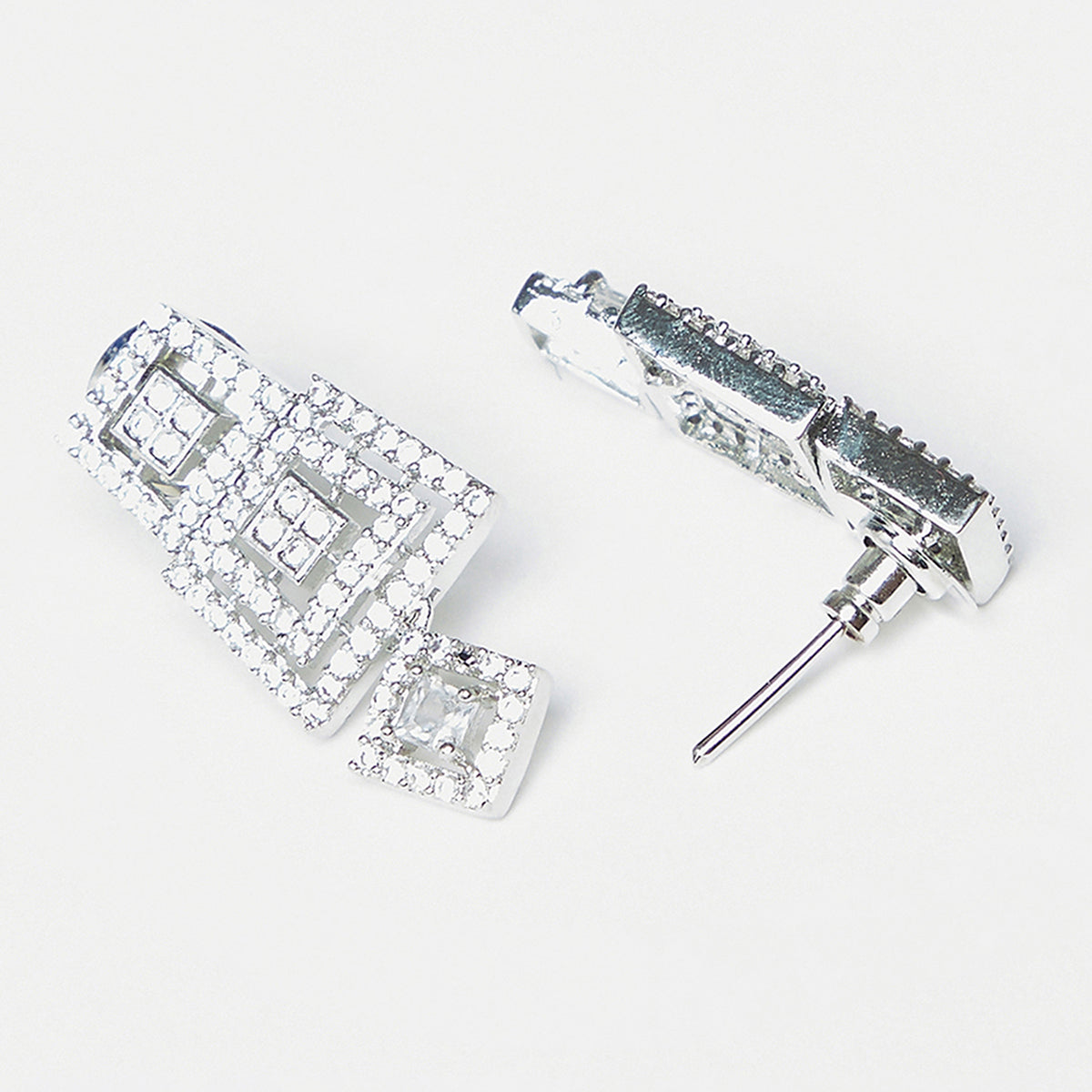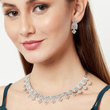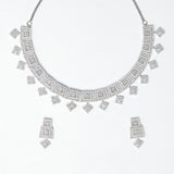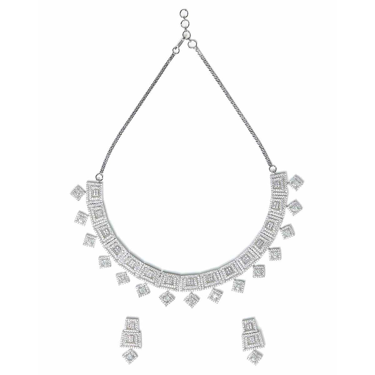 Embellished with CZ gems, this brass necklace set has been given silver plating. Wear with a gown.