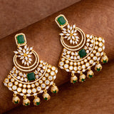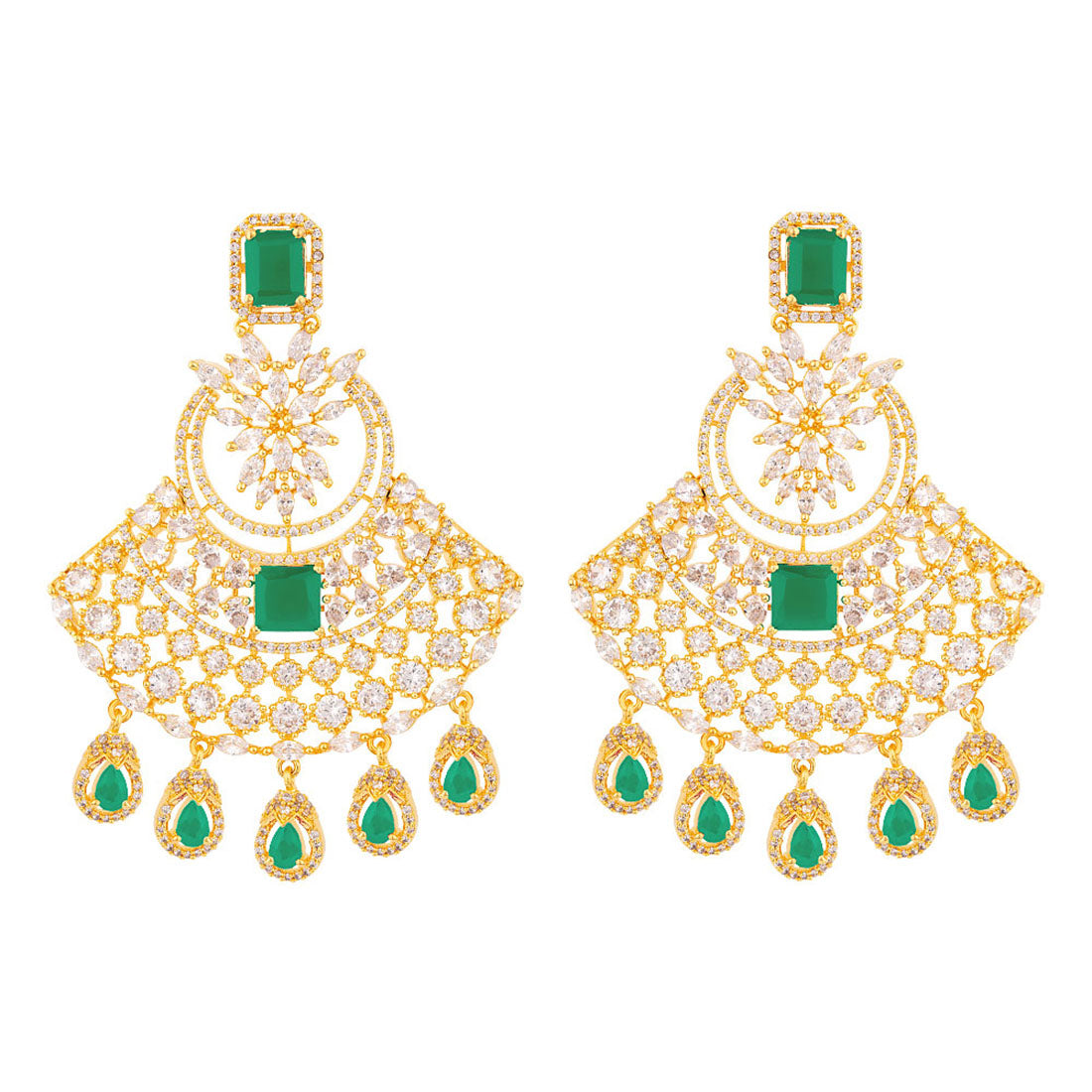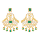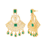 Heavily embellished ethnic inspired earrings, fashioned out of brass. Yellow gold plated. Wear with formal Indian attire.