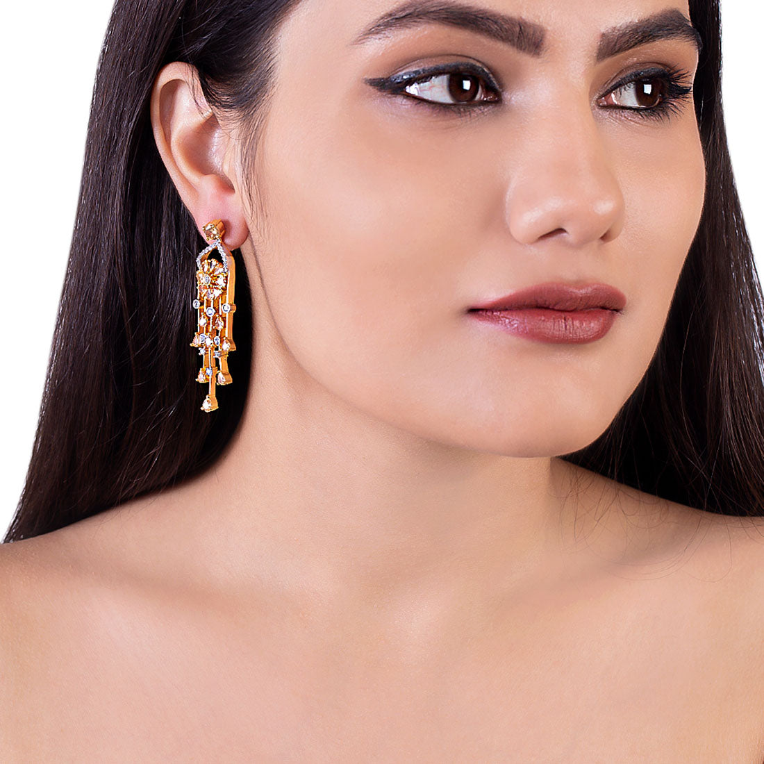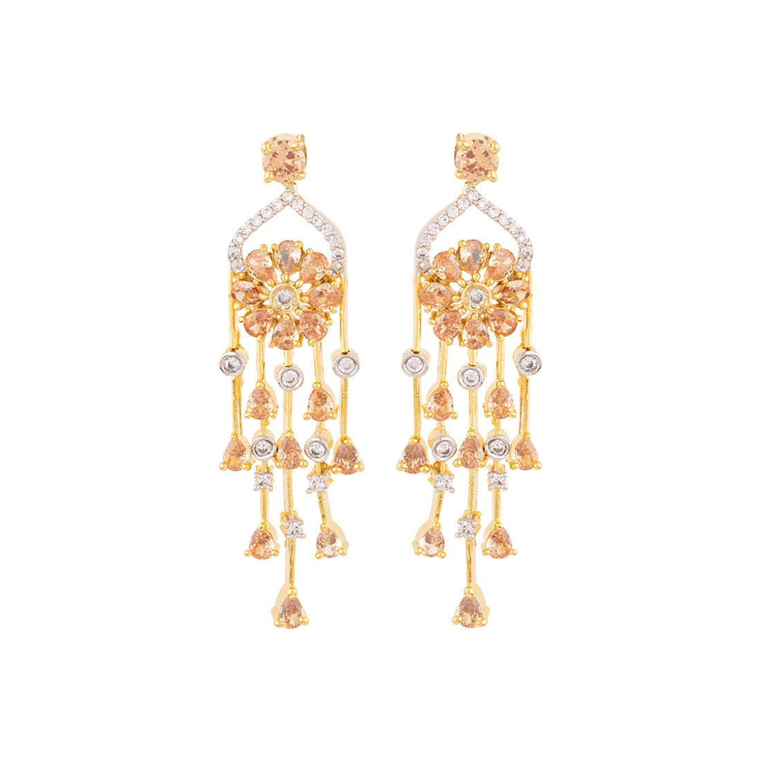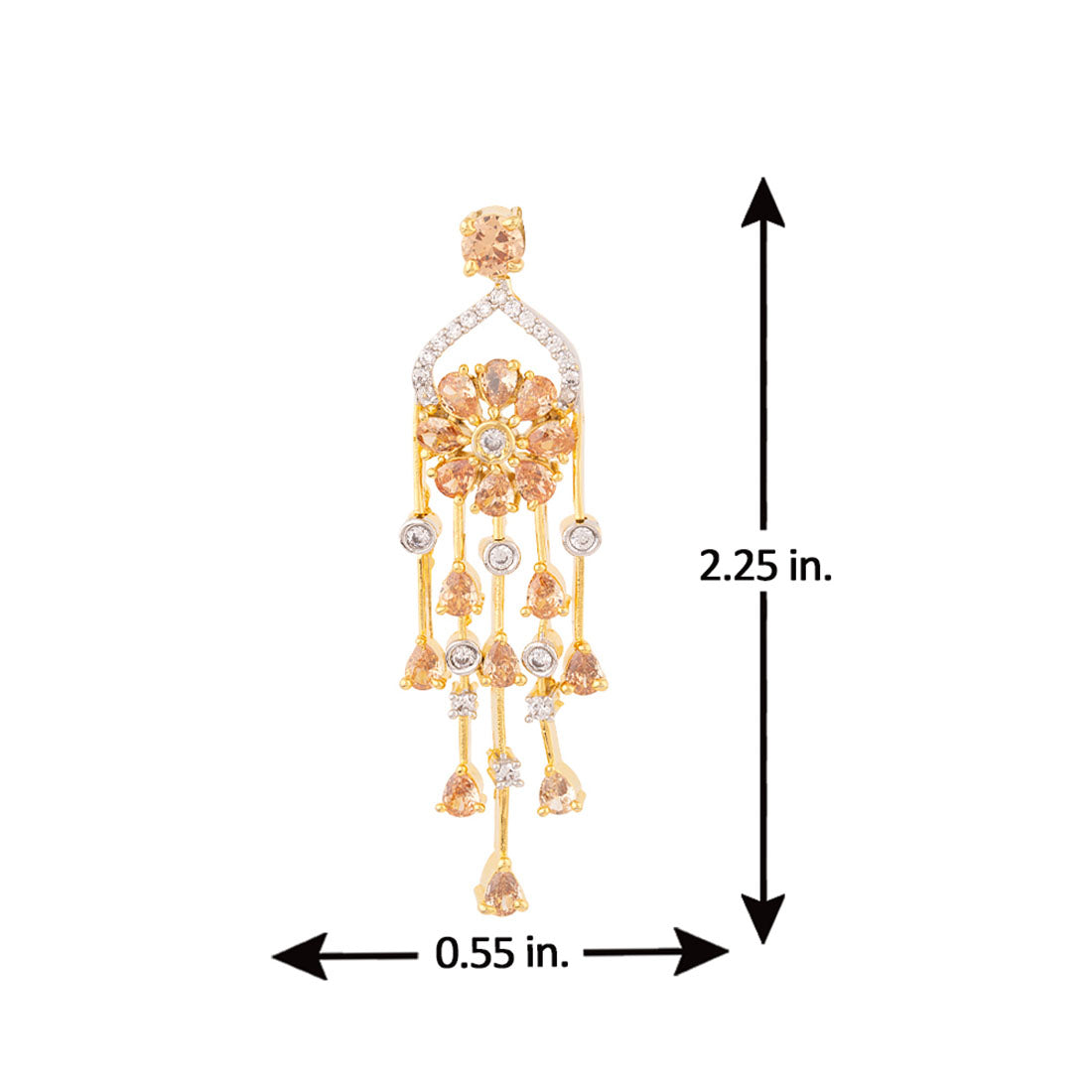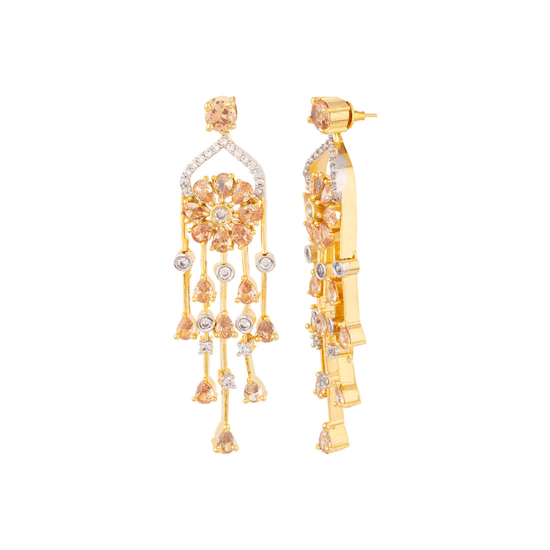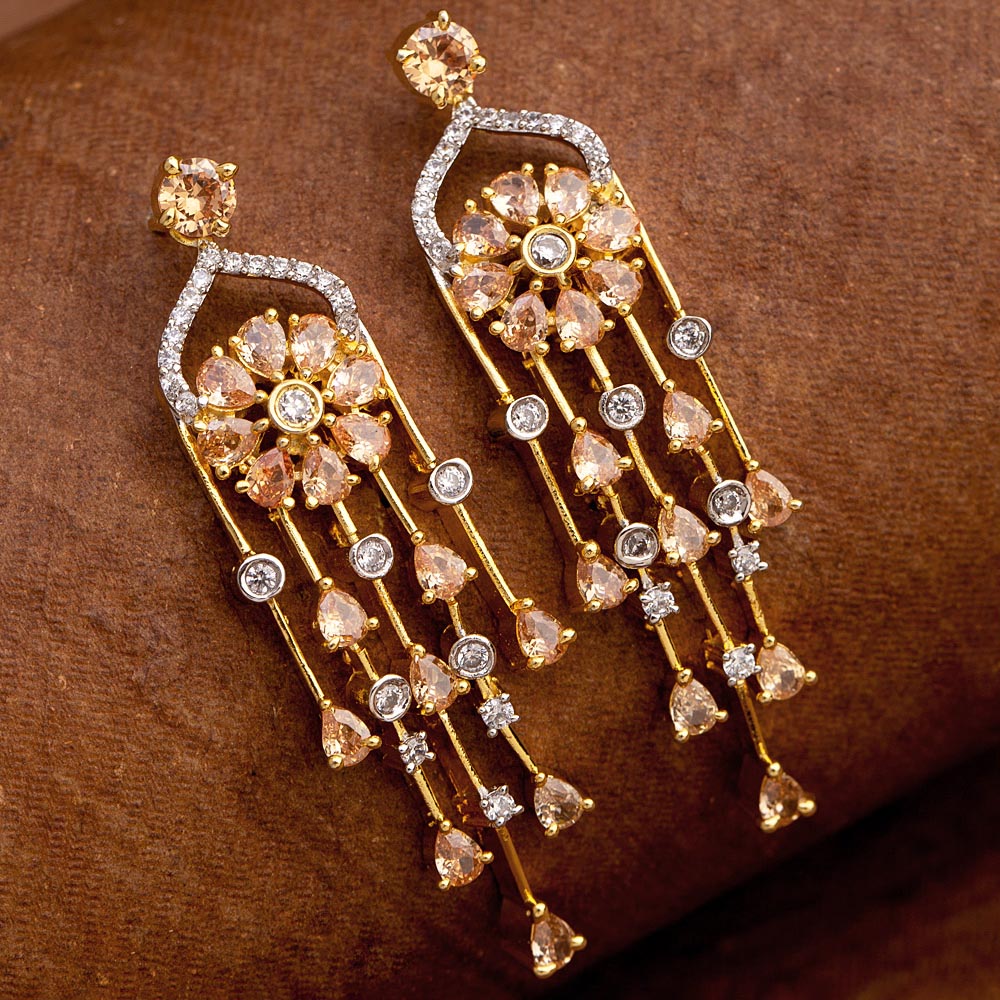 Heavily embellished drop style earrings made from brass. Two tone plated. Wear with a trendy saree.