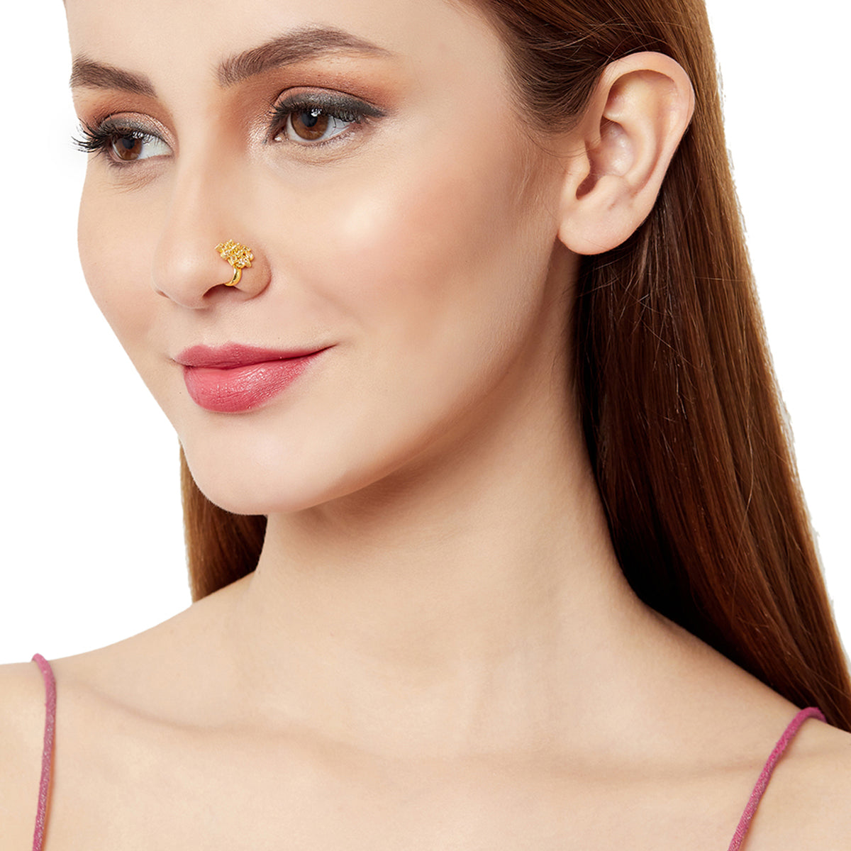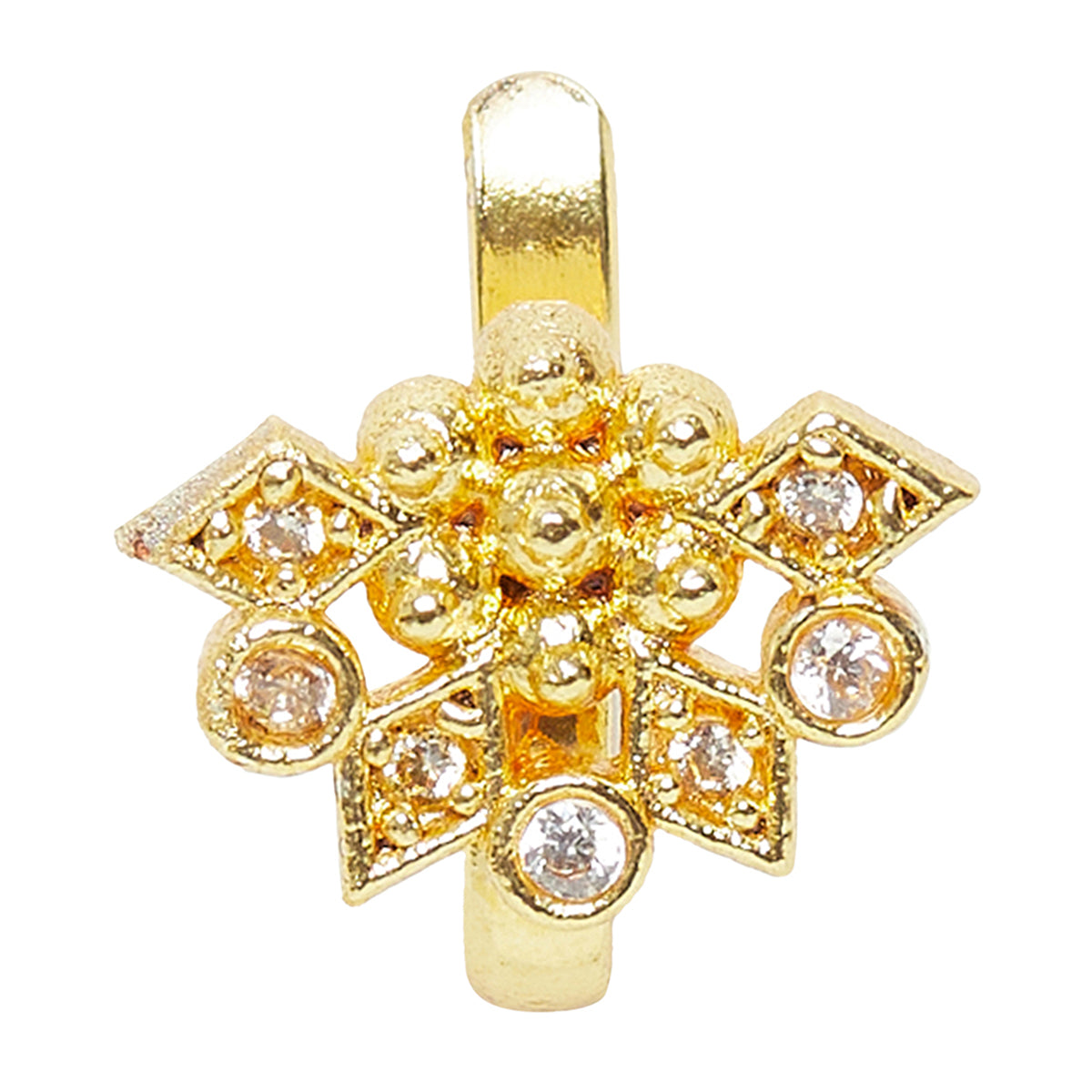 This pretty gold plated nose pin adds an instant sparkle to your face. Delicate adornment that brings forth your exquisiteness!