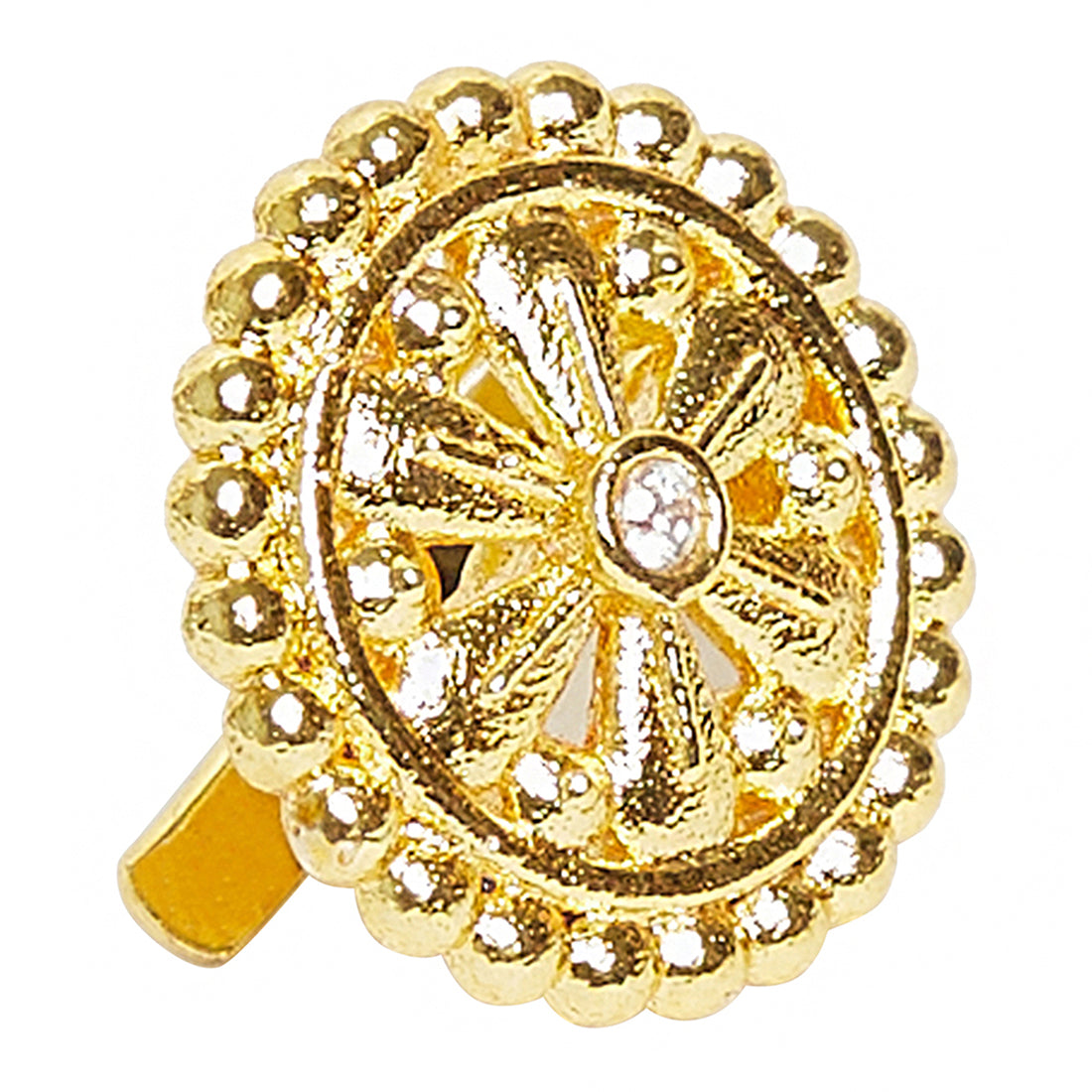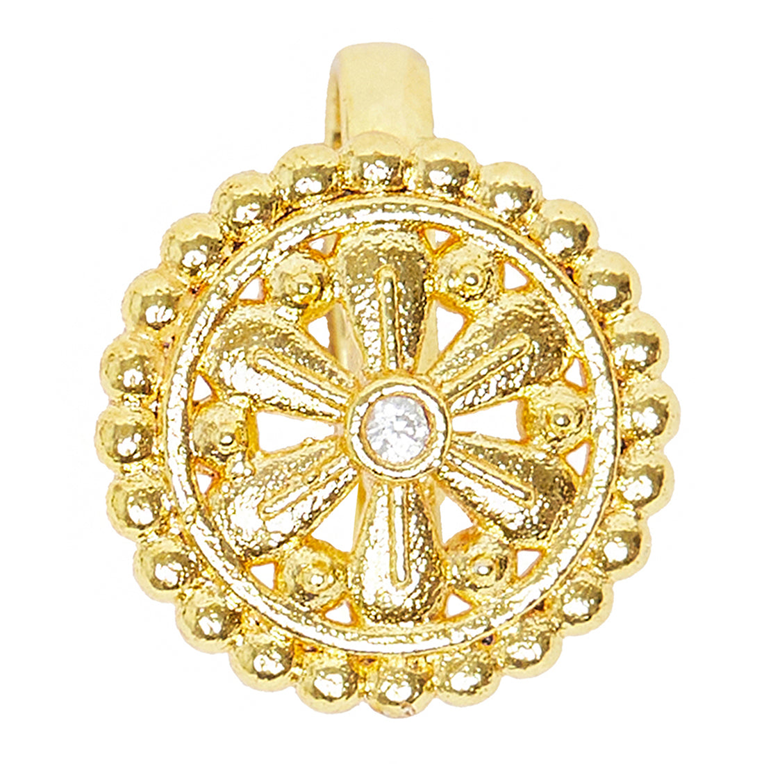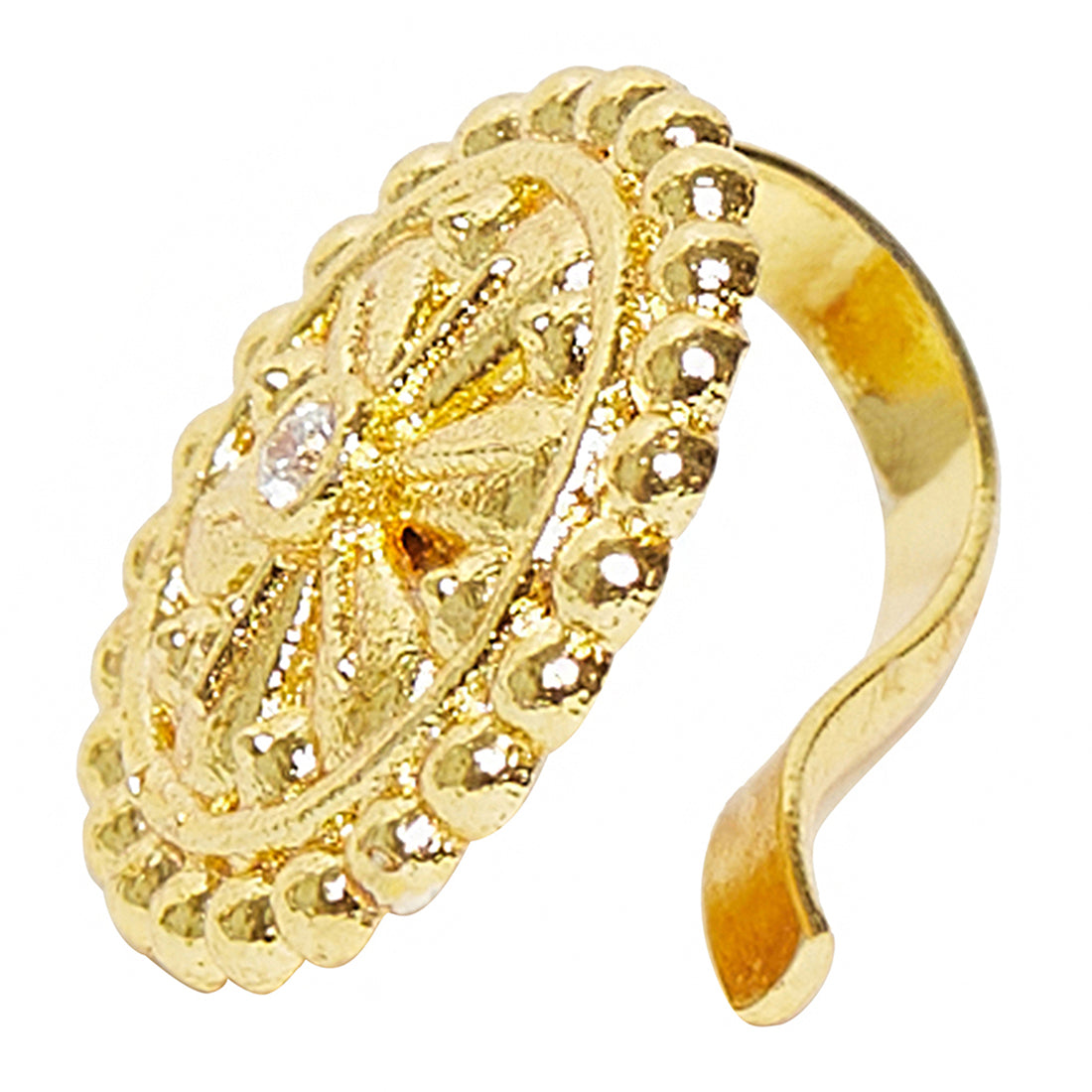 Round shaped brass nose clip with gold plating. Wear with traditional attire. Intricate details, delightful colours and minimalistic style of this collection will accentuate the wearers modern and traditional look.