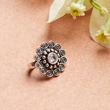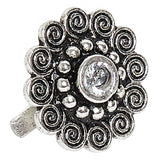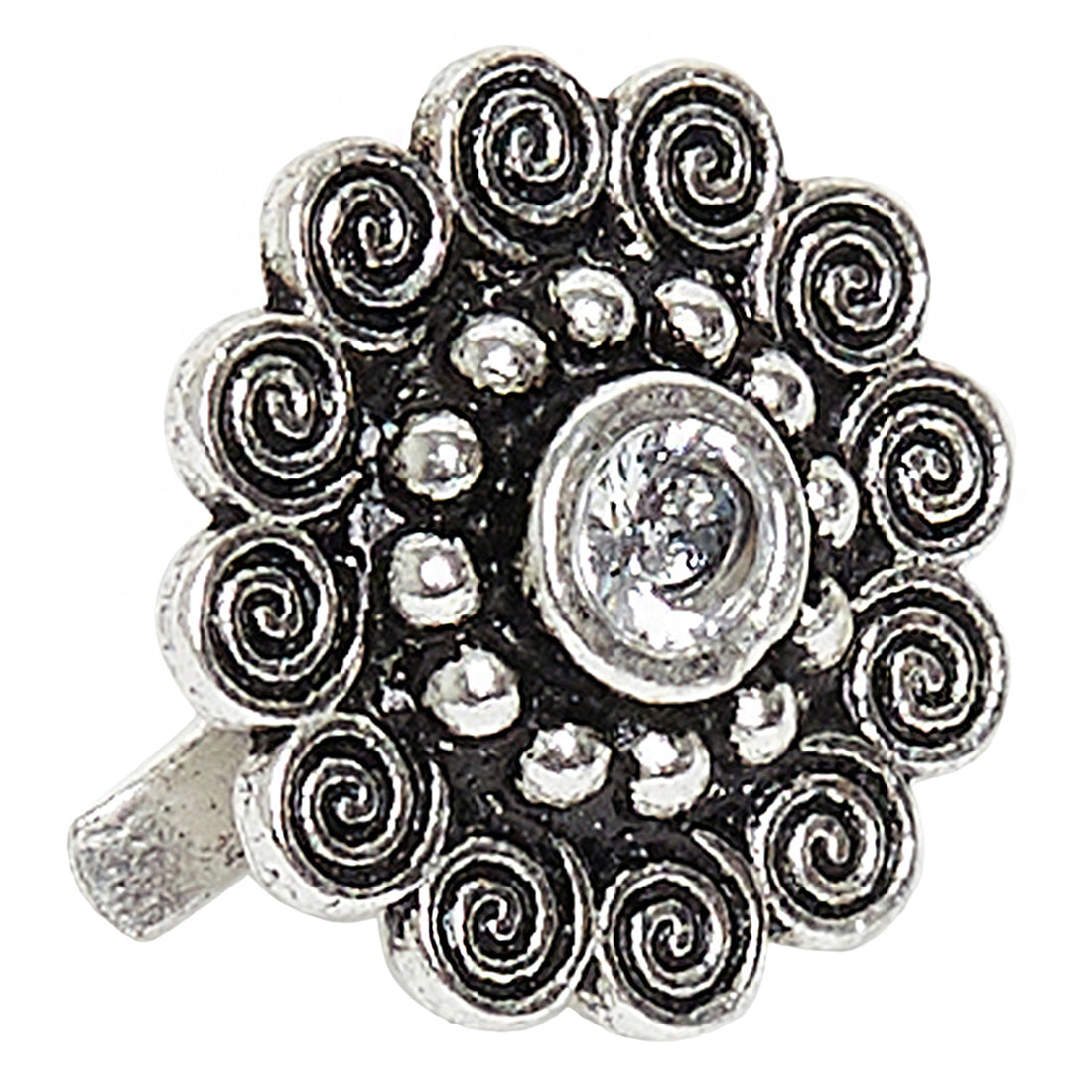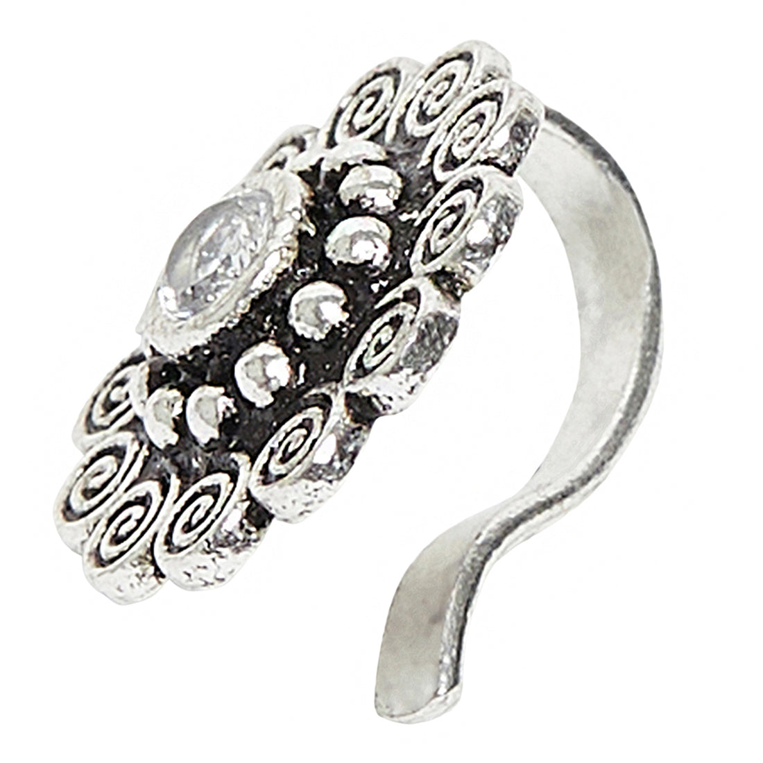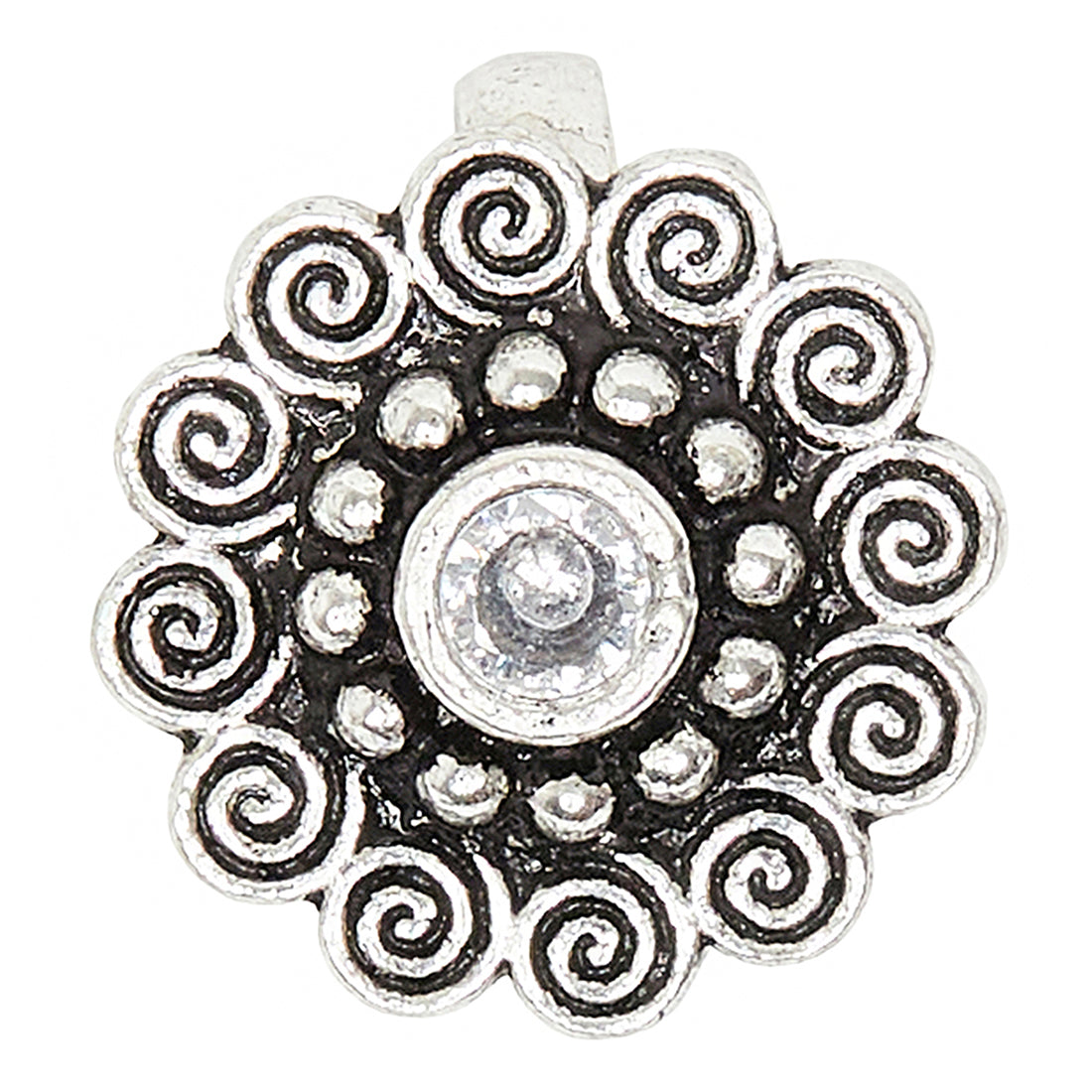 Floral motif brass nose clip with oxidized silver plating. Wear with casual attire. Intricate details, delightful colours and minimalistic style of this collection will accentuate the wearers modern and traditional look.