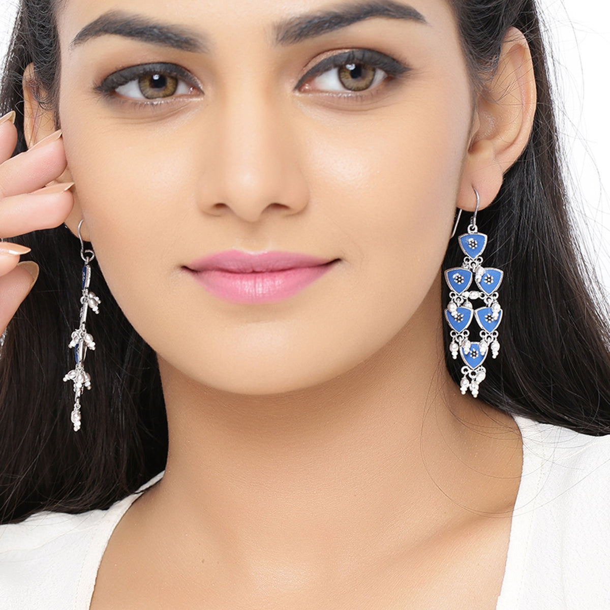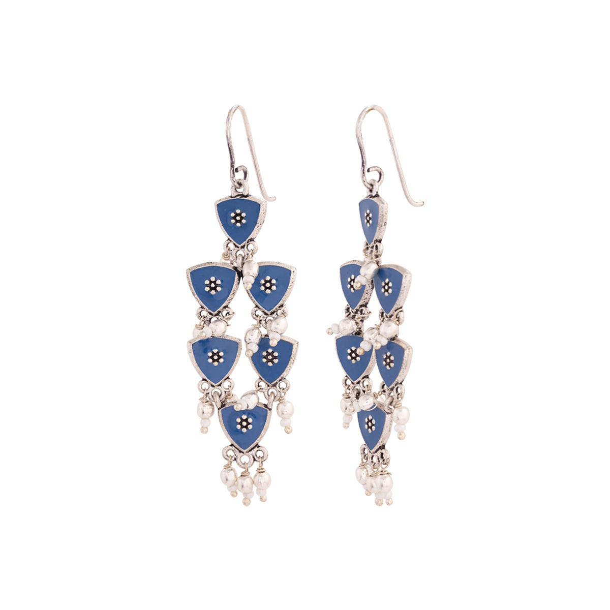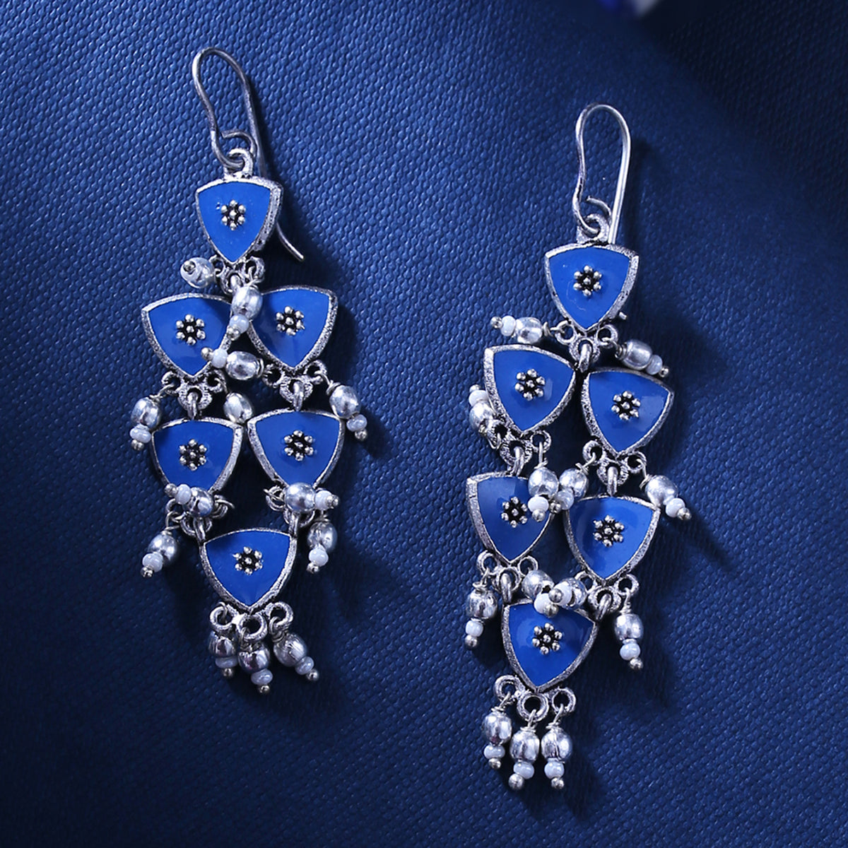 Enameled grapevine drop earrings made from brass. Oxidised silver plated. Pair with Indian attire.