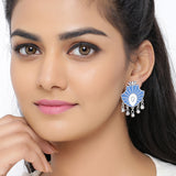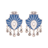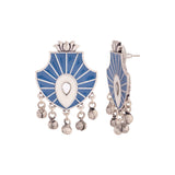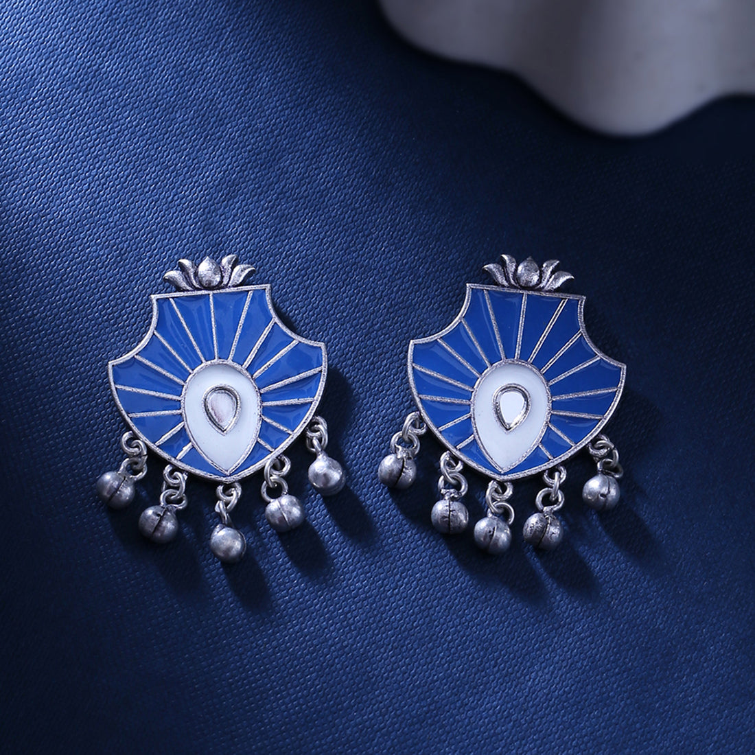 Floral inspired stud earrings made from brass. Oxidised silver plated and enameled. Wear with a casual kurta.