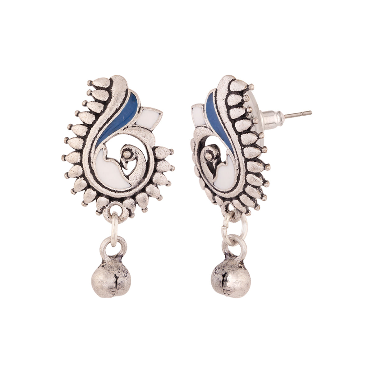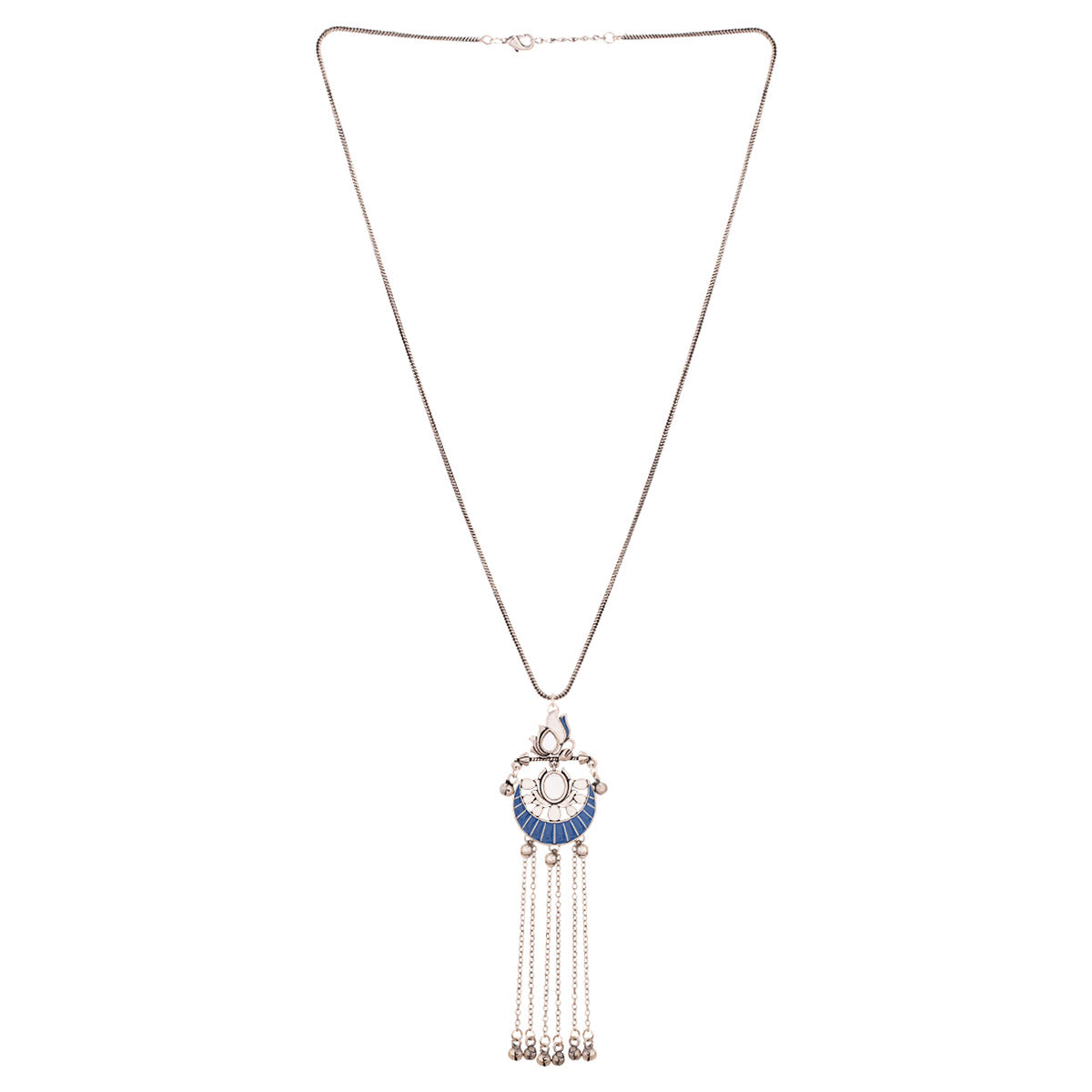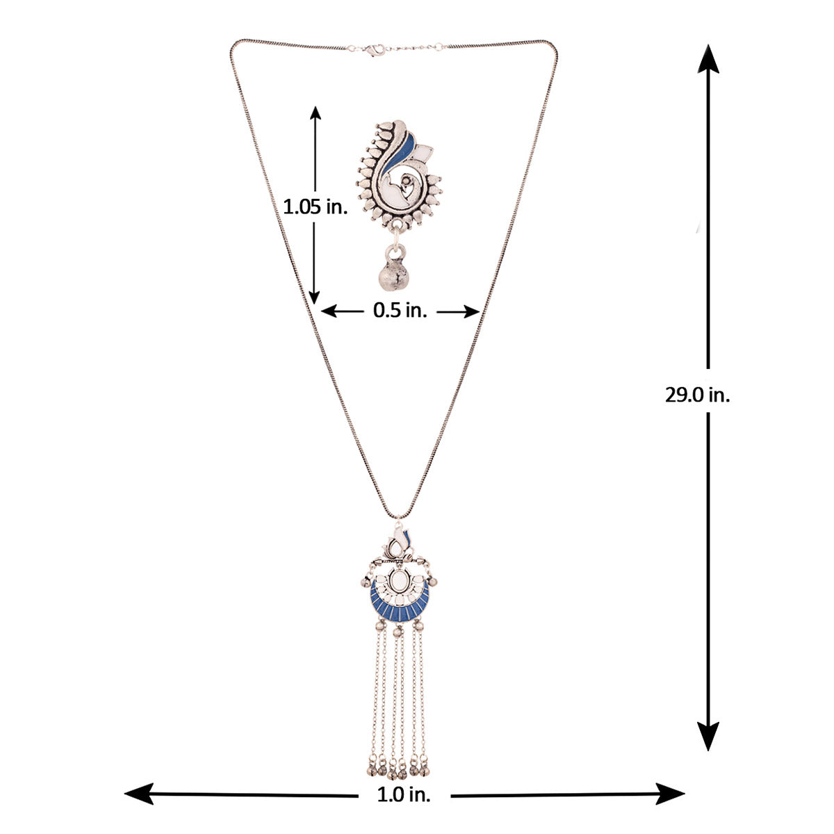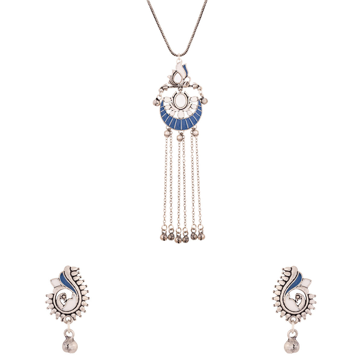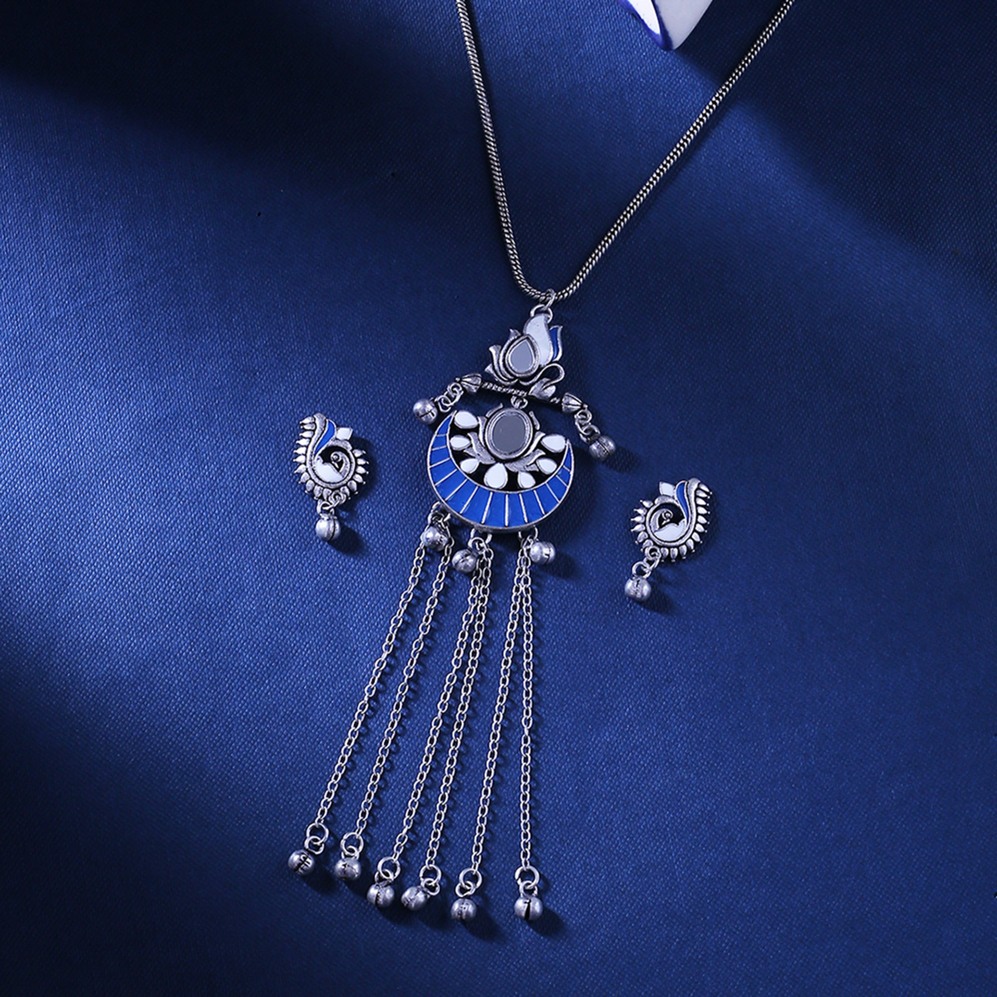 Tassels drop pendant set made from brass and enameled. Oxidised silver plated and lightly embellished. Wear with ethnic attire.
