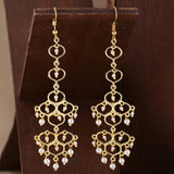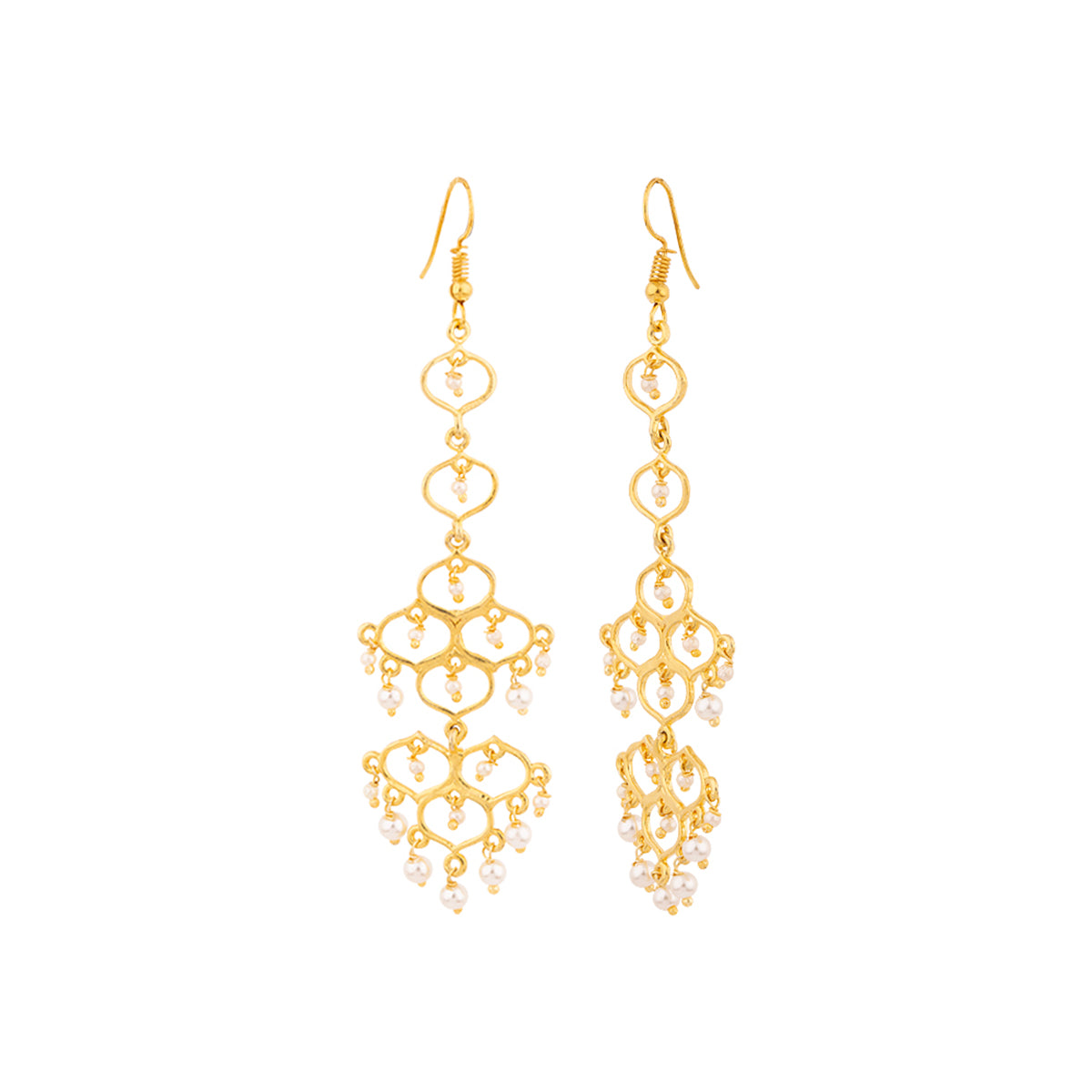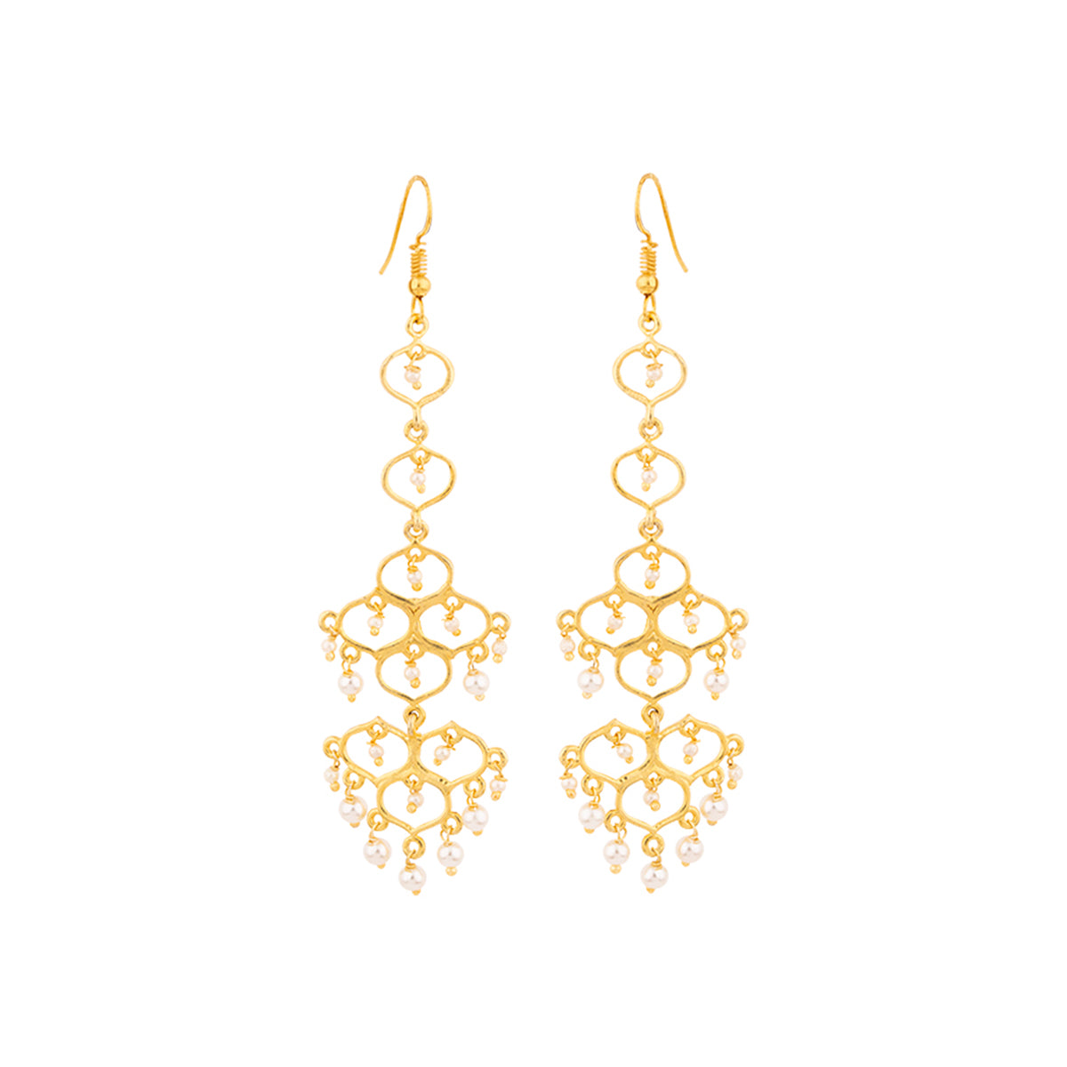 Jaali Pearl Circles Long Drop Earrings