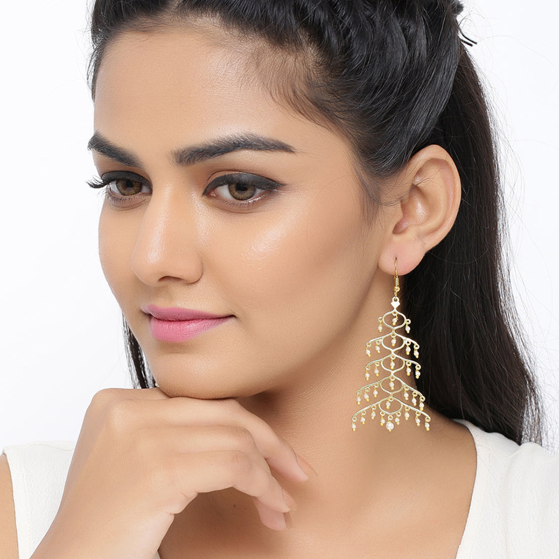 Jaali Pearl Layered Drop Style earrings