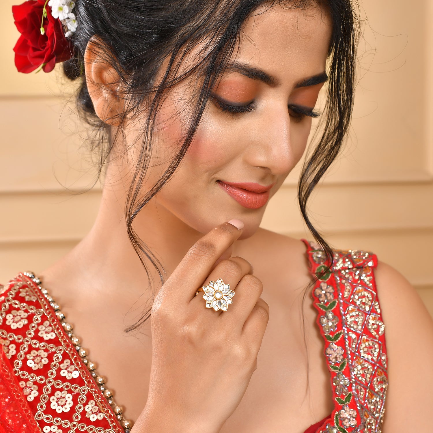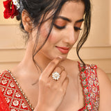 Inspired by the timeless beauty of a Rose Garden, this collection seamlessly blends the intricate patterns and classic silhouettes of Kundan Polki jewelry with a contemporary twist. Adorned with a mesmerizing combination of Polki, CZs, carved stones, and pearls, each piece tells a story of grace and sophistication.