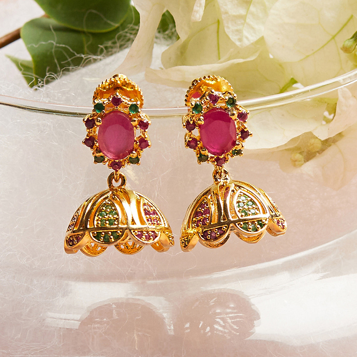 Look glamorous with these jhumki pattern earrings. Created in brass, these jhumki shaped earrings are designed to complement a range of your ethnic outfits.