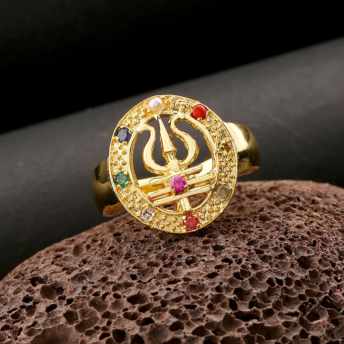 The Accessory: A ring from our Kailasha collection features a trident symbol with Trishul in a circle.