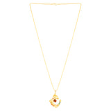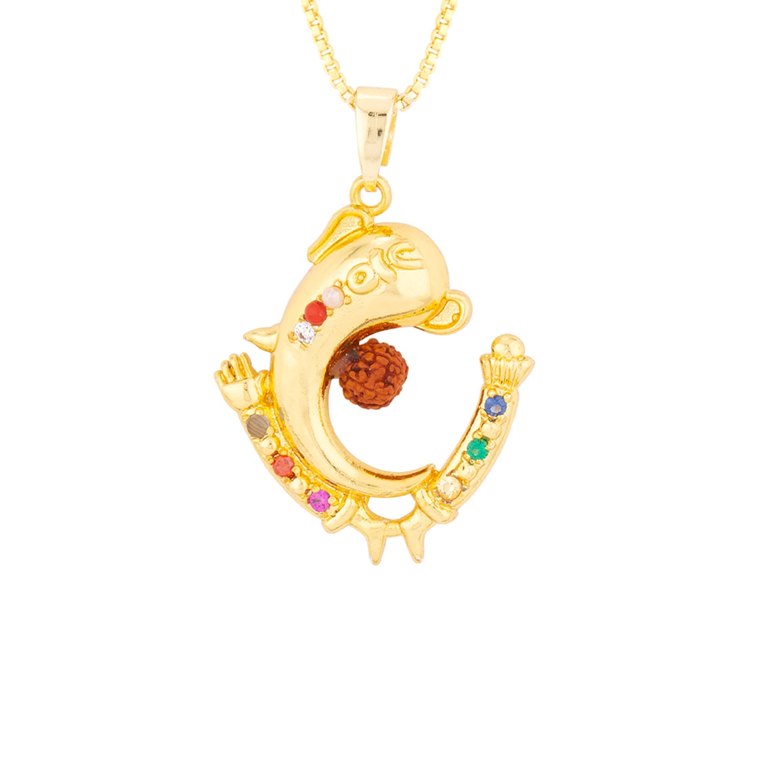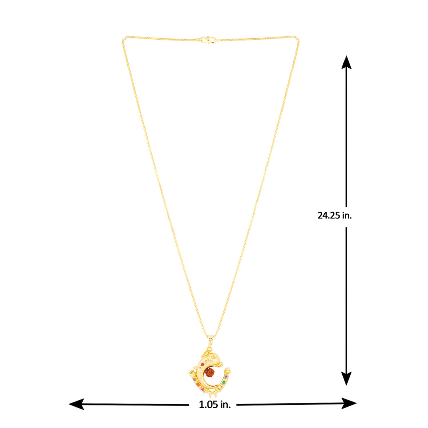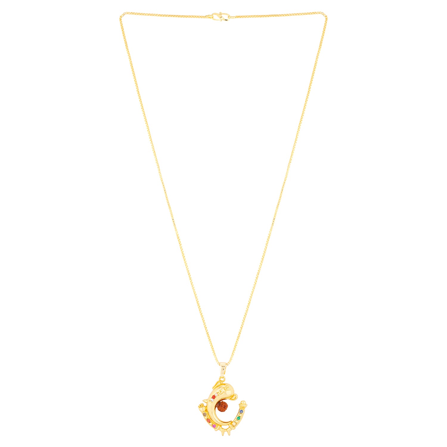 Ganesha motif men's brass pendant, featuring a Rudraksha gemstone. Yellow gold plated and threaded in a thin rope chain. Pair with formal ethnic looks. To make your accessories last longer avoid harsh chemicals and moisture. Keep dry, clean with dry cloth and wear with panache. "India�s largest fashion jewelry brand DARE, comes from the House of Voylla as a limited edition of handcrafted accessories for the modern Indian men. "