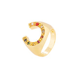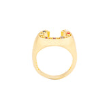 Horseshoe men's brass ring with yellow gold plating. Embellished with CZ gems. Pair with everyday attire.