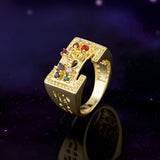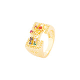 Men's yellow gold plated brass ring, embellished with CZ gemstones. Pair with formal attire.