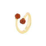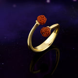 Men's finger ring, made from brass and yellow gold plated. Featuring two Rudraksha beads. Good for everyday wear.