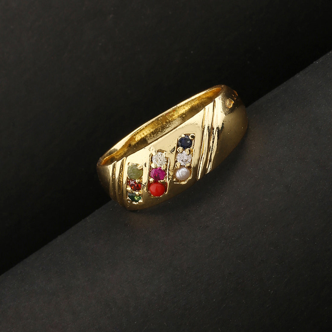 The Accessory: A colorful stone studded band ring from our Kailasha collection. How to Wear : Pair it with your casual outfits. Own the Part: Perfect for daily wear.
