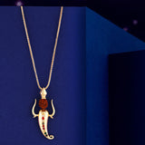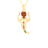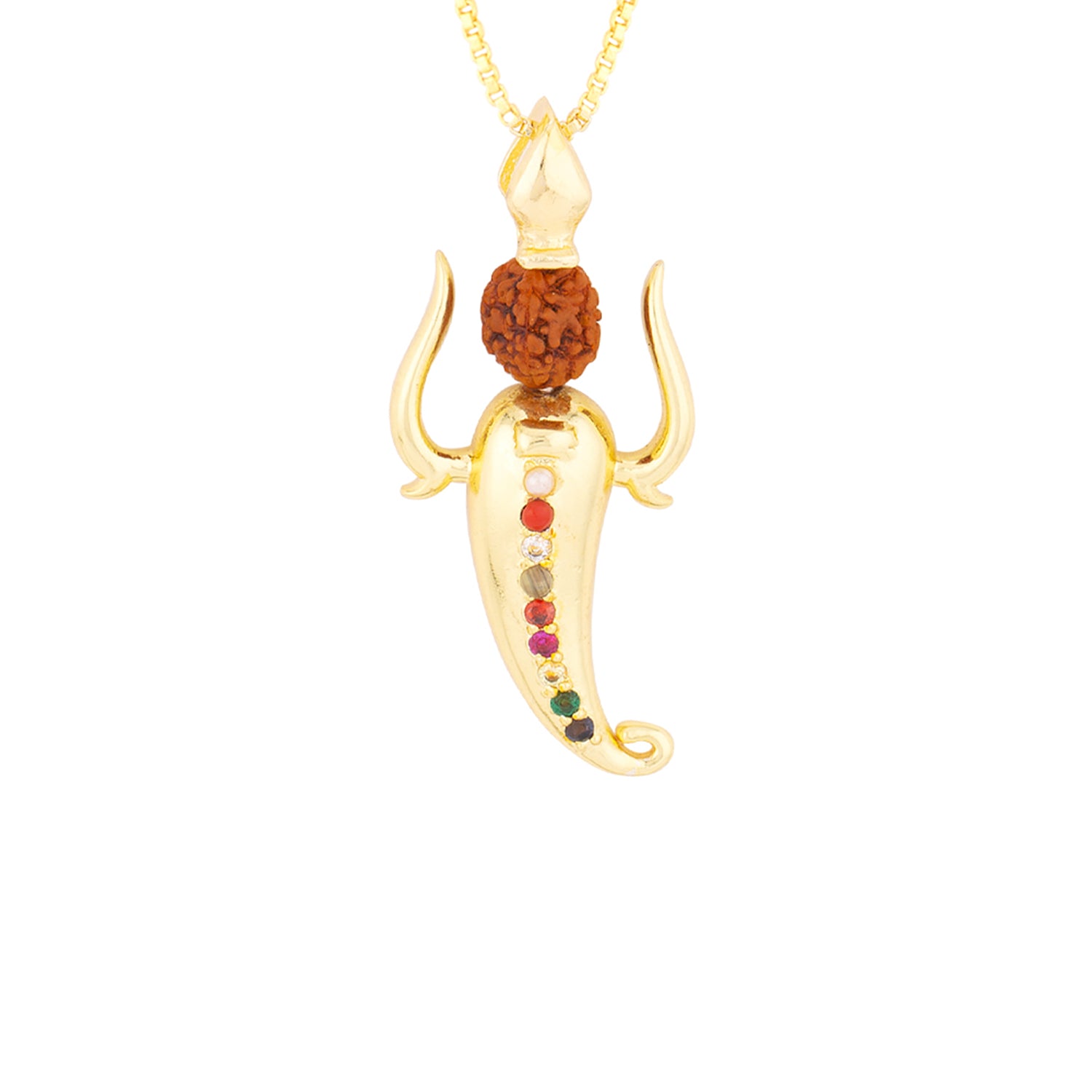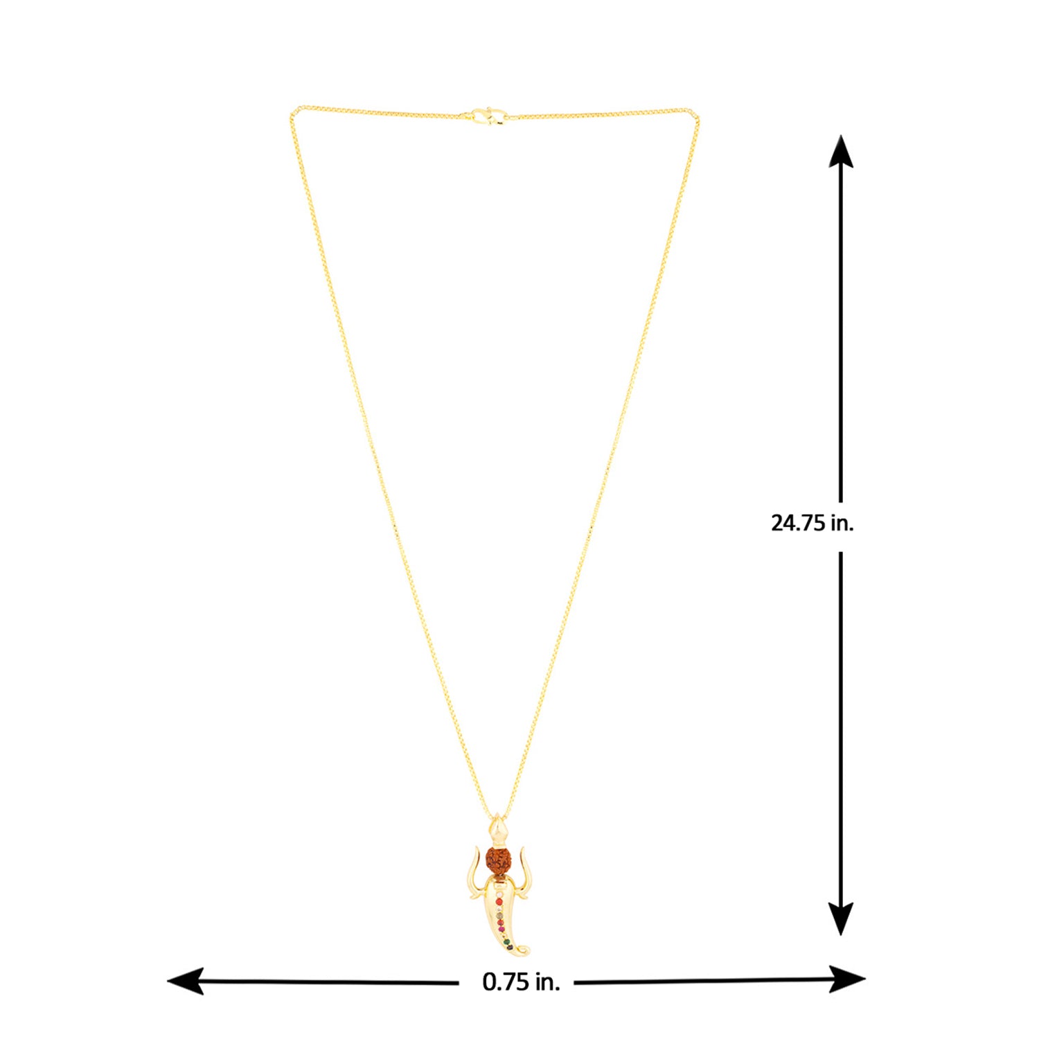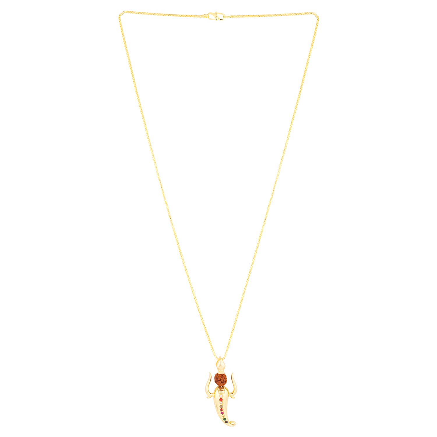 Trishul Ganesha motif pendant, featuring a Rudraksha bead. Yellow gold plated and made from brass. Thread in a rope chain of your choice. To make your accessories last longer avoid harsh chemicals and moisture. Keep dry, clean with dry cloth and wear with panache. "India�s largest fashion jewelry brand DARE, comes from the House of Voylla as a limited edition of handcrafted accessories for the modern Indian men. "