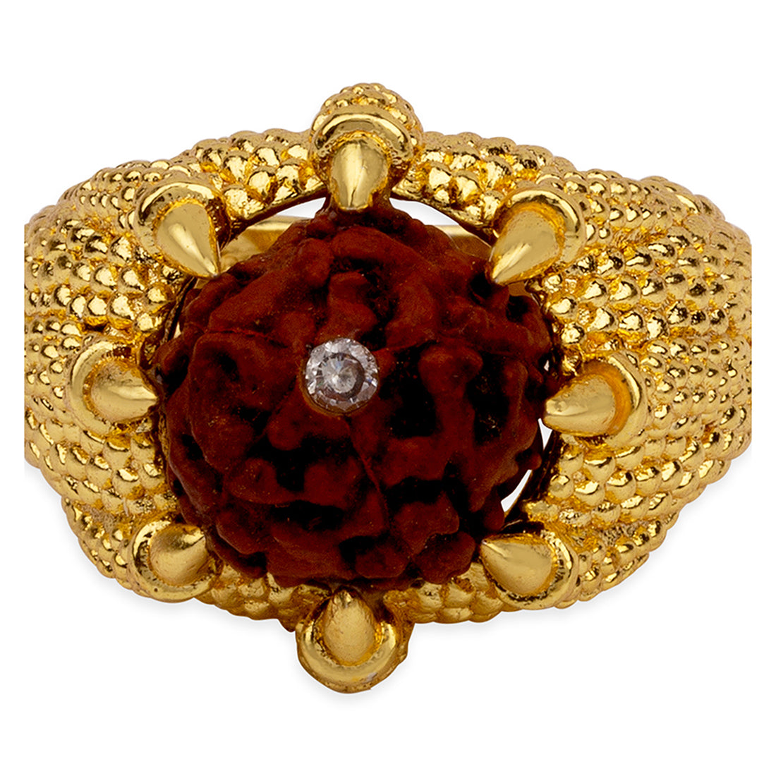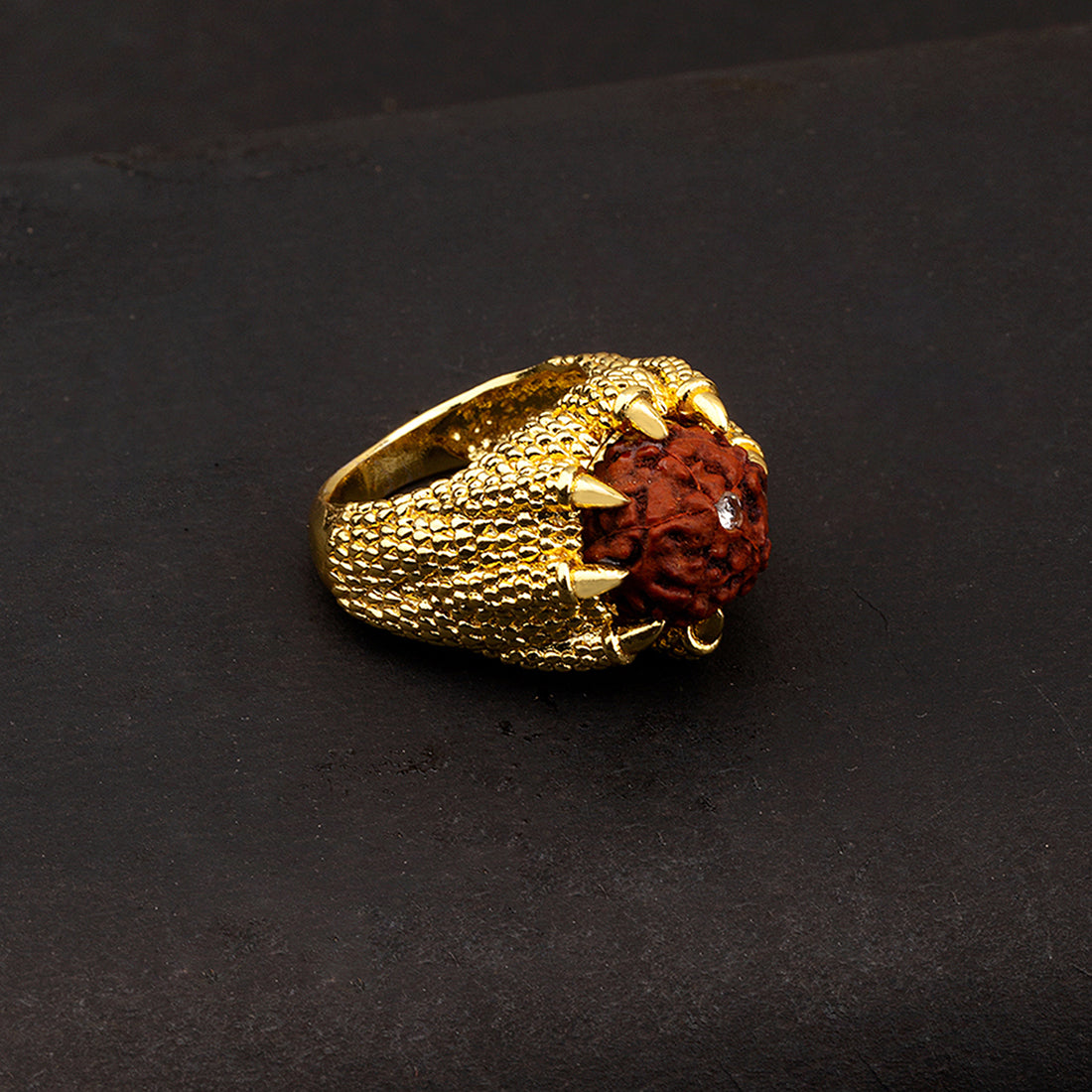 The Accessory: A yellow gold Rudraksha studded ring is from the Kailasha collection. How to Wear: Pair this ring with your favorite traditional wear. Own the Part: Perfect for religious ceremony.