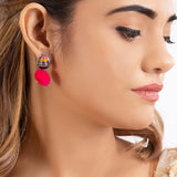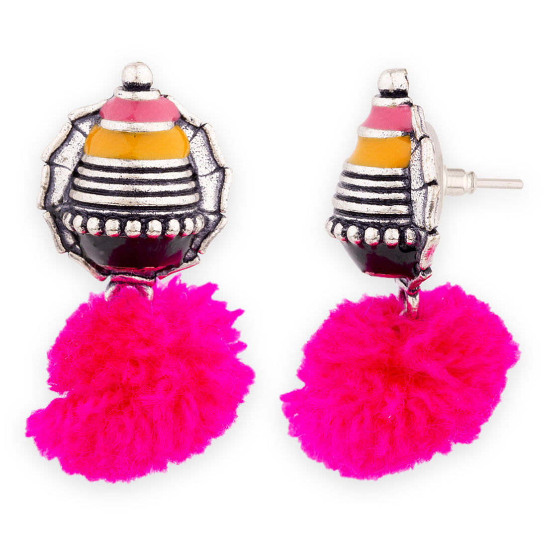 These Kalbelia inspired pom pom earrings will add style to any outfit. Featuring enameling, these brass earrings are the final fun touch that pulls it all together.