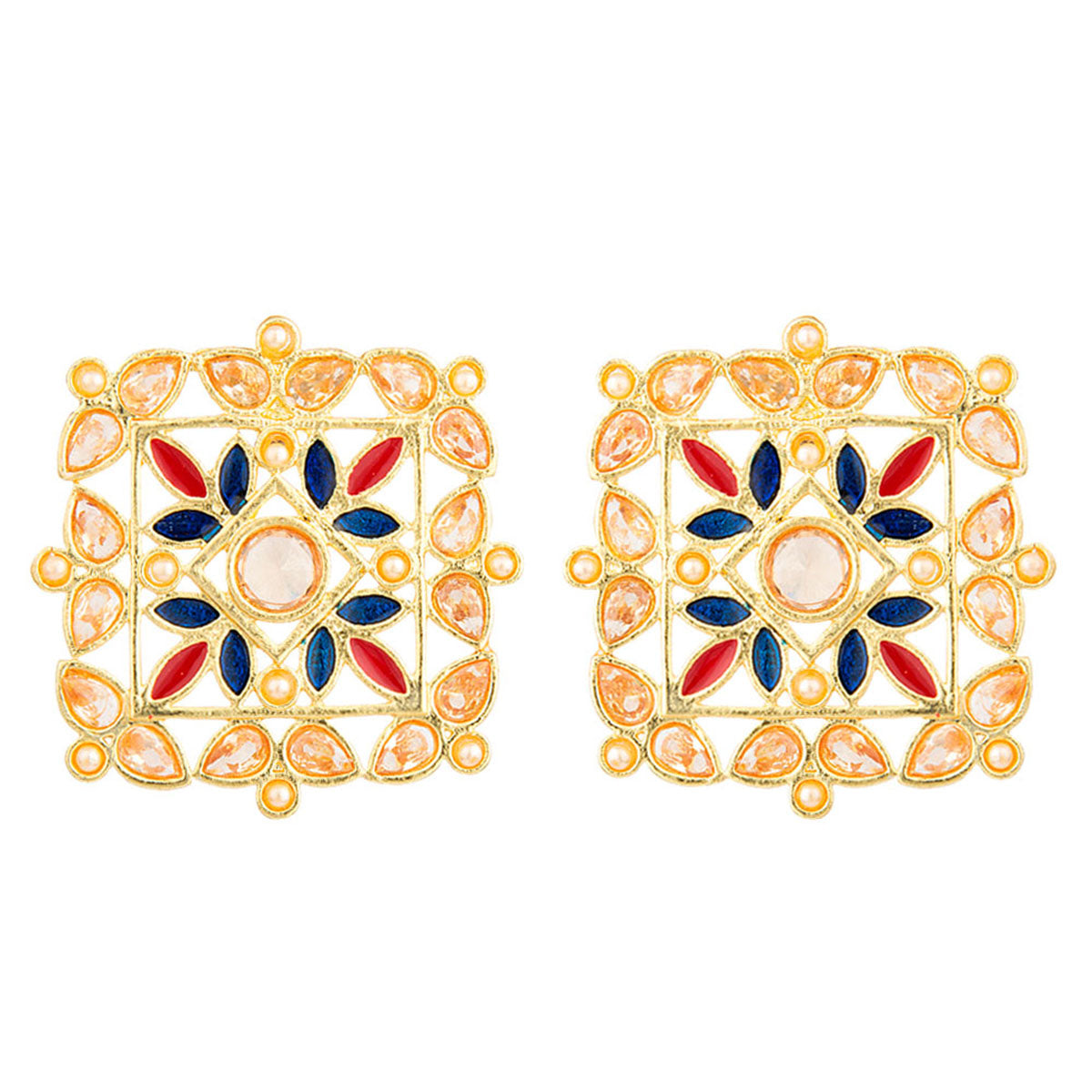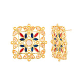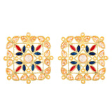 Inspired from Indian rangoli designs, the floral earrings have been crafted from zinc alloy. Yellow gold plated and perfect match for casual and formal Indian ensembles.