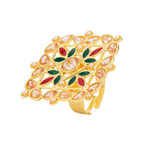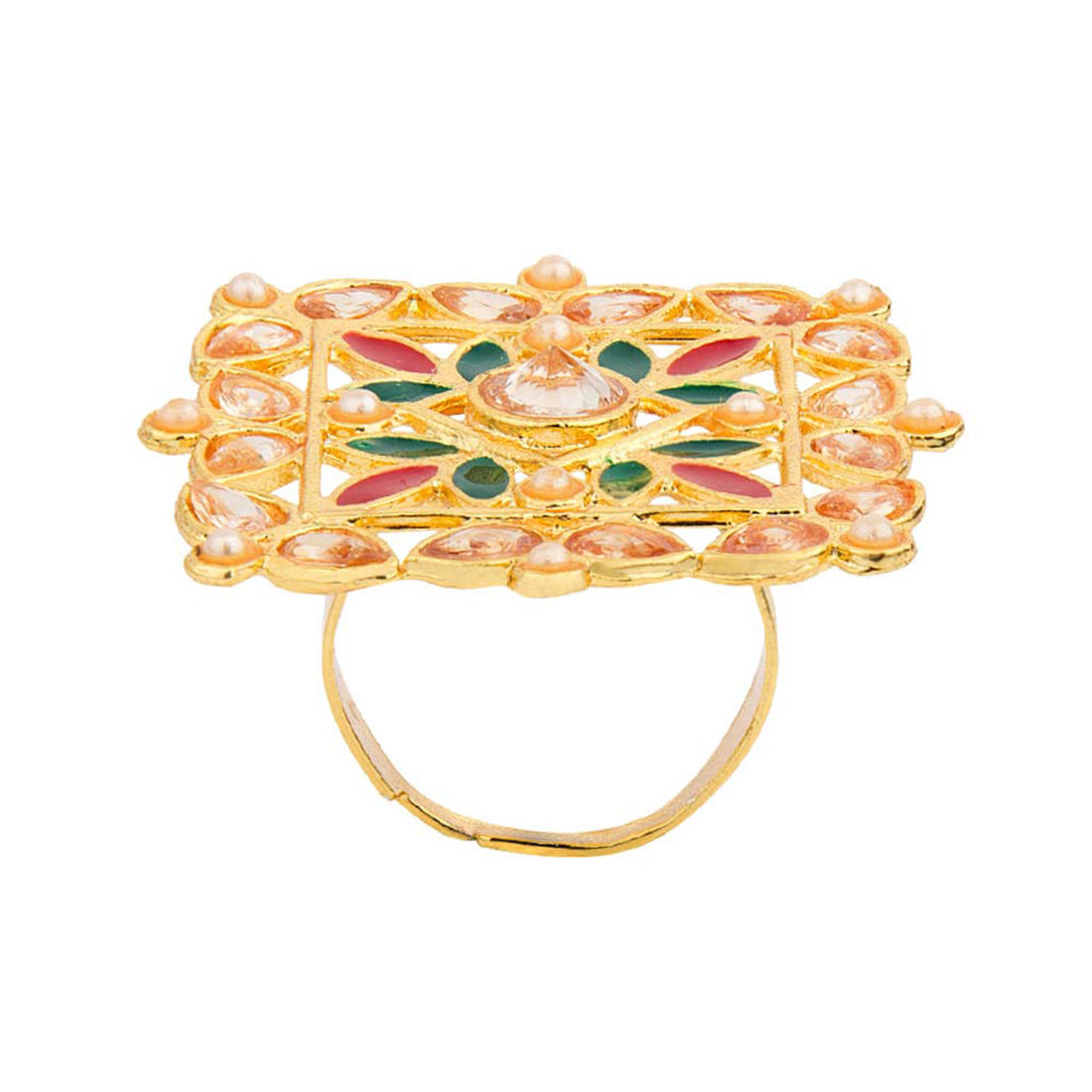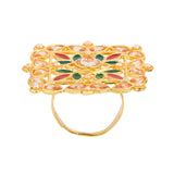 Zinc alloy ring fashioned after vintage Indian jewelry. Yellow gold plated and feautring floral motifs. Perfect match for Indian and Indo-Western looks.