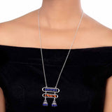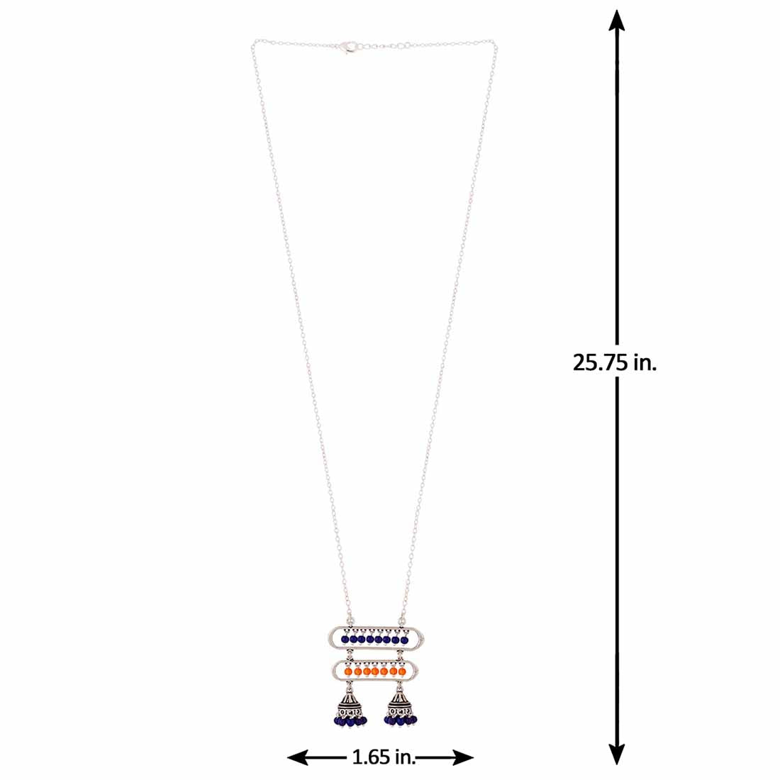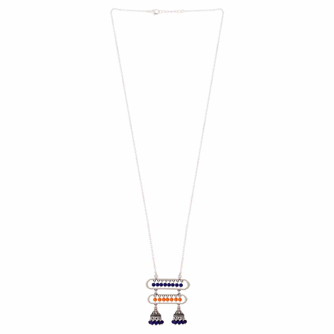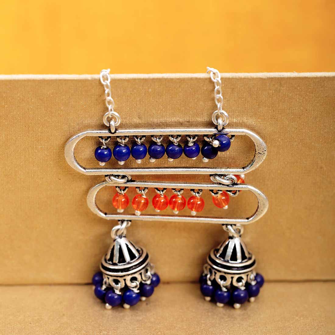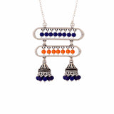 Brass necklace with jhumka drops. Embellished with beads and oxidised silver plated. Wear with Indian and Indo-Western attire.