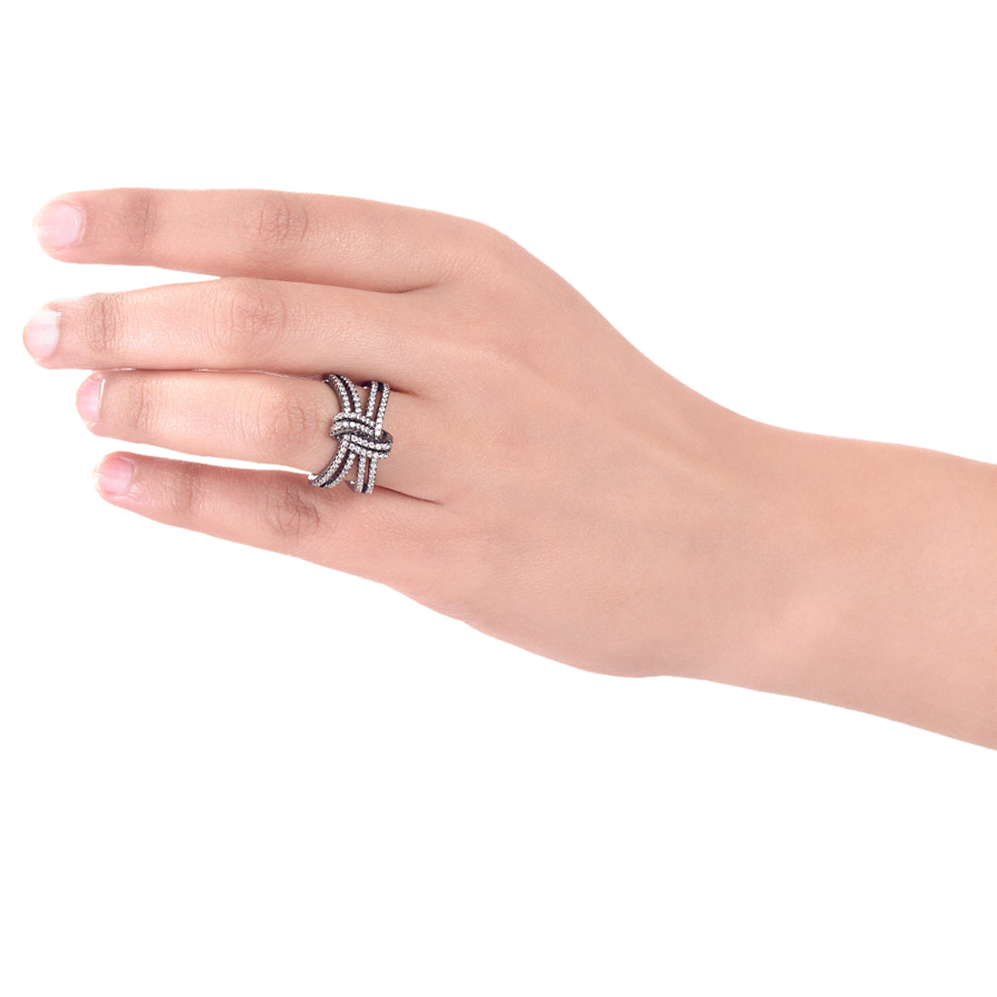 Knotted Style American Diamond Gems Adorned Ring