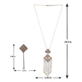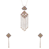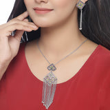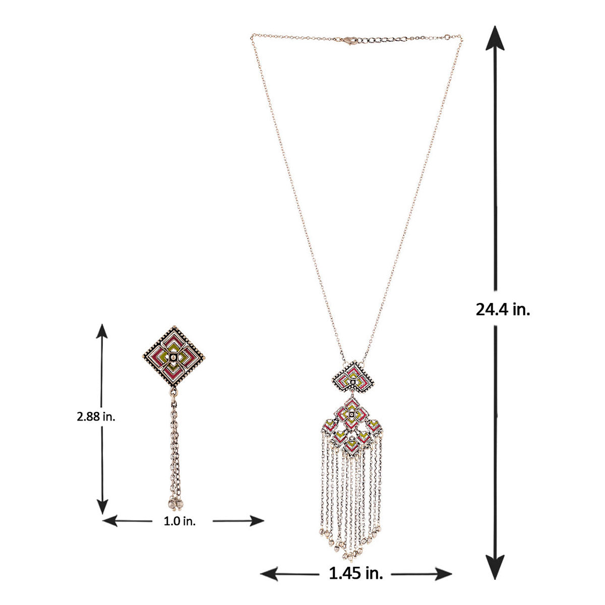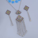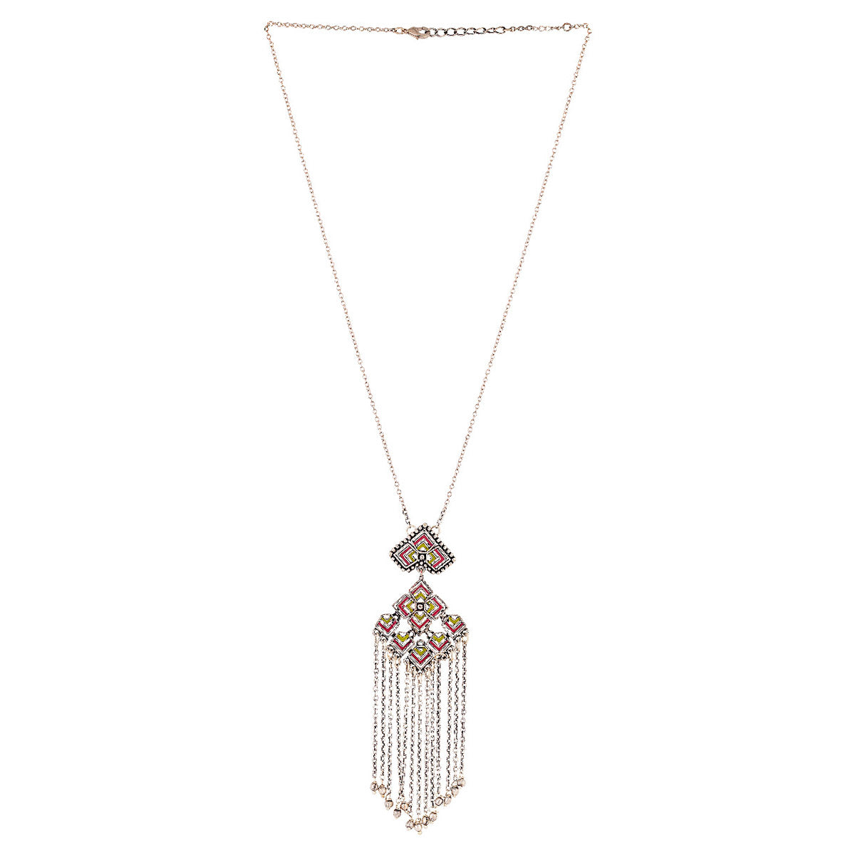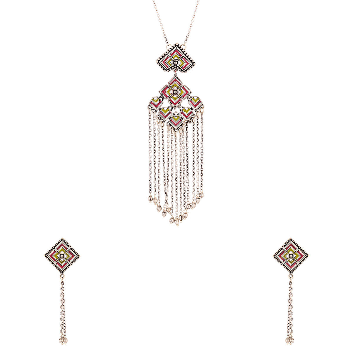 Tassels drop brass pendant set with oxidised silver plating. Enameled and a good match for ethnic and Indo-Western looks.