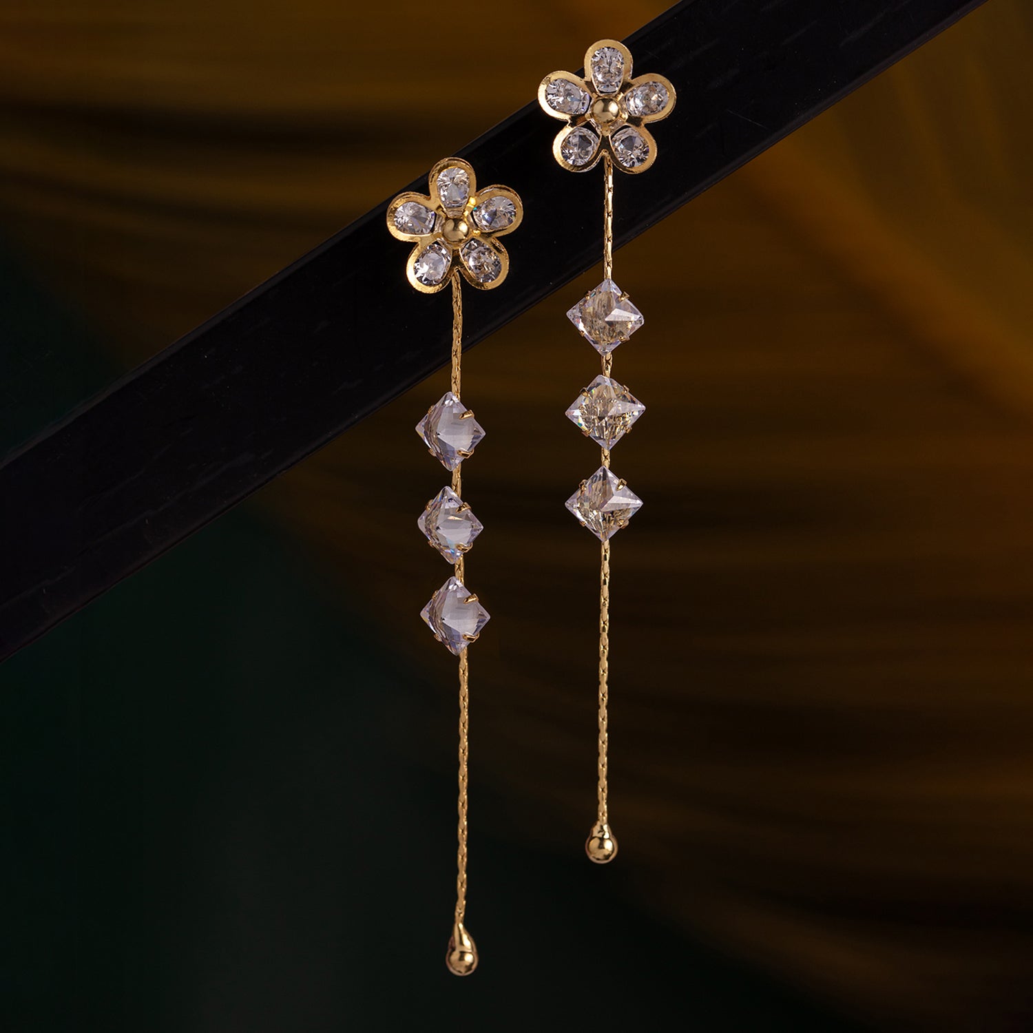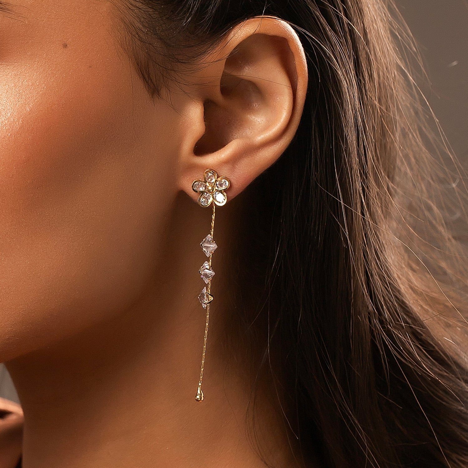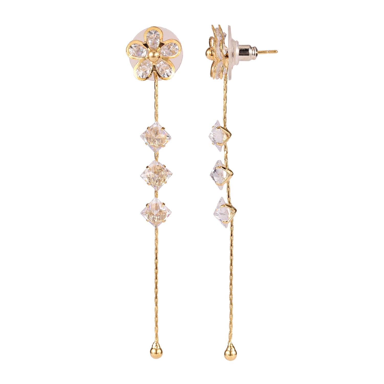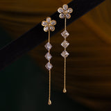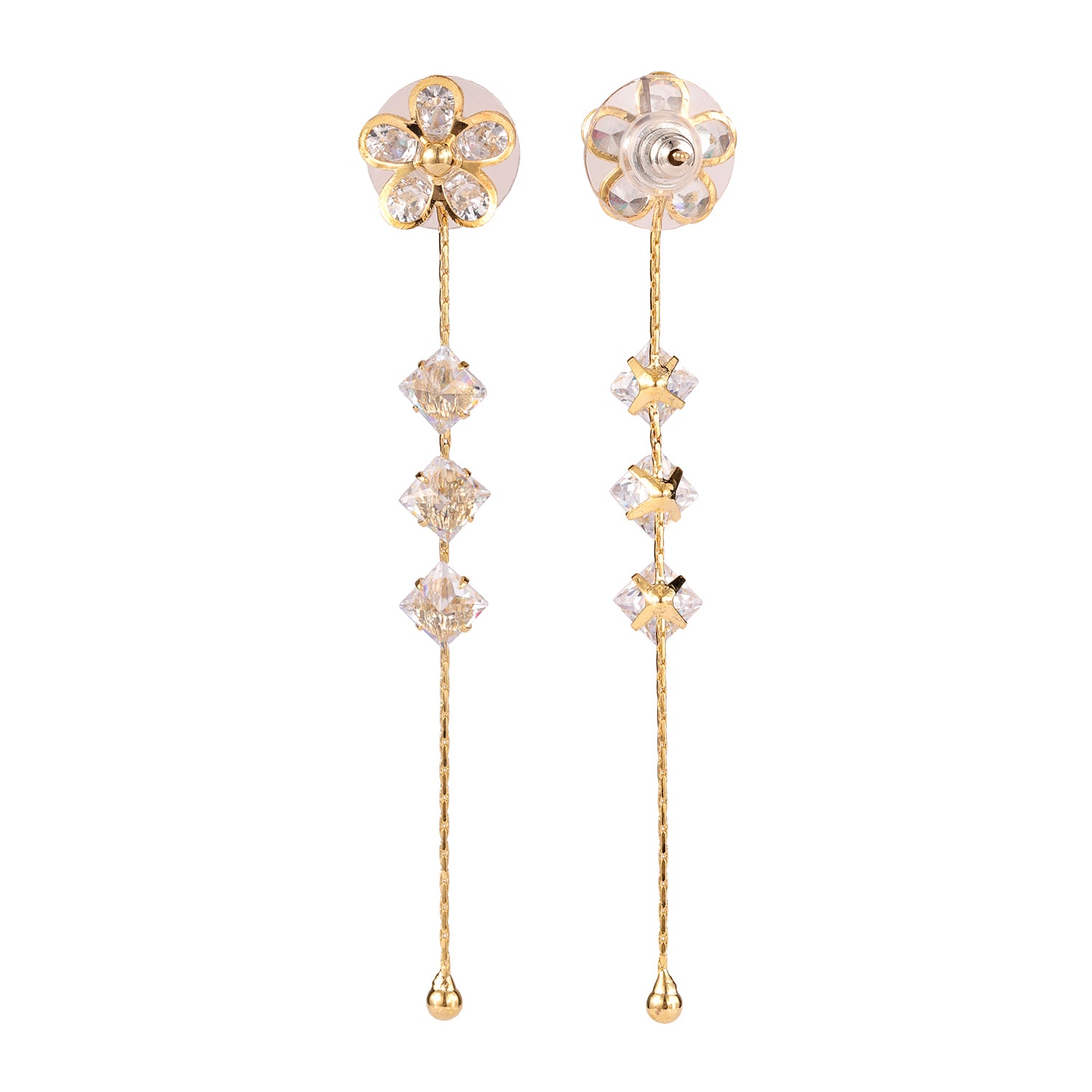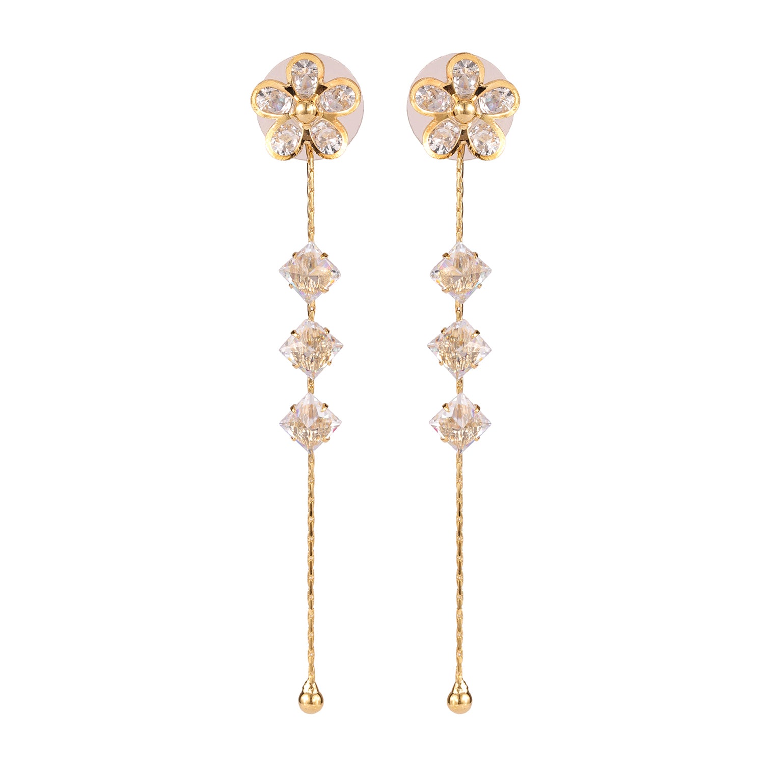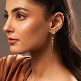 Drape yourself in pure sophistication with the Korean Bling Blossom Glow Dangler Earrings—a radiant blend of delicate artistry and modern elegance. Crafted from premium alloy and plated in sumptuous yellow gold, these floral-inspired danglers boast exquisite crystal petals that shimmer with every movement, making them the perfect statement earrings for women. Whether you're dressing up for a festive occasion or looking for chic everyday wear, their timeless charm ensures you always stand out. Part of the coveted Korean Bling collection, these designer earrings fuse Korean minimalism with a touch of grandeur, making them an ideal pick for vacation wear, travel, office jewelry, or party styling. Pair them effortlessly with Western ensembles for a polished look or embrace cultural aesthetics by complementing them with ethnic attire. Gift these trendy earrings to your sister, girlfriend, wife, mother, or a loved one, making celebrations like Rakshabandhan, Diwali, Christmas, New Year, or Valentine’s Day extra special. Whether it’s a Raksha Bandhan gift for your sister, a thoughtful Valentine’s Day surprise, or a chic holiday accessory, these earrings exude pure enchantment in every way.
